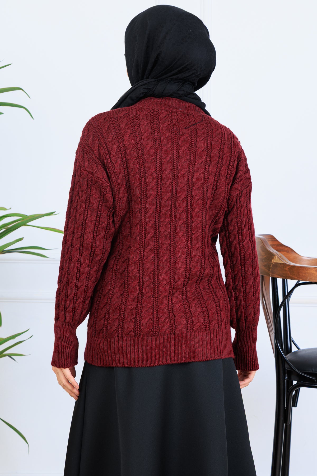 BNG Women Braided Short Knit Cardigan S4000 Burgundy - Rosenberg