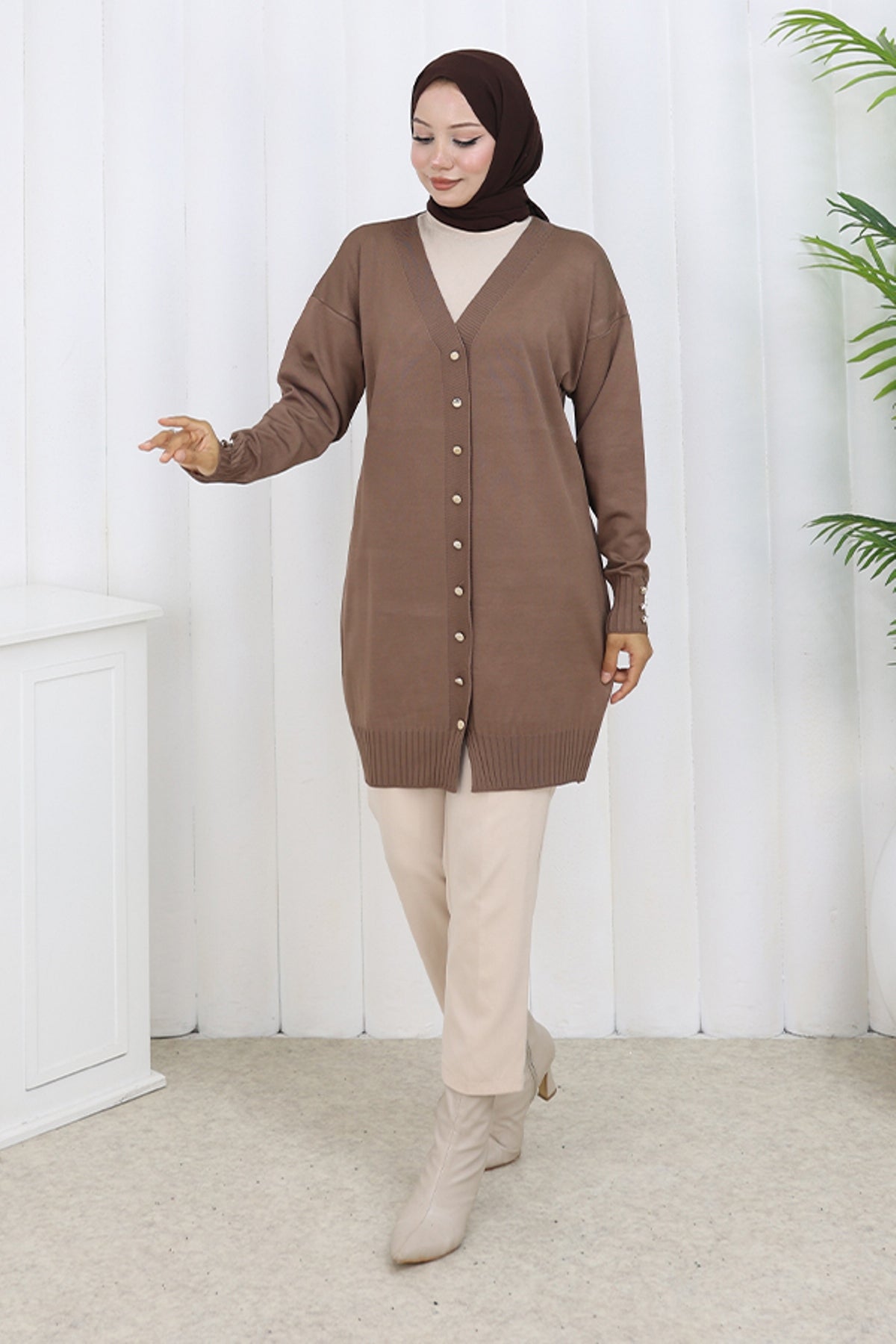 BNG Women Buttoned Long Mercerized Cardigan N3176 Mink - Fishers