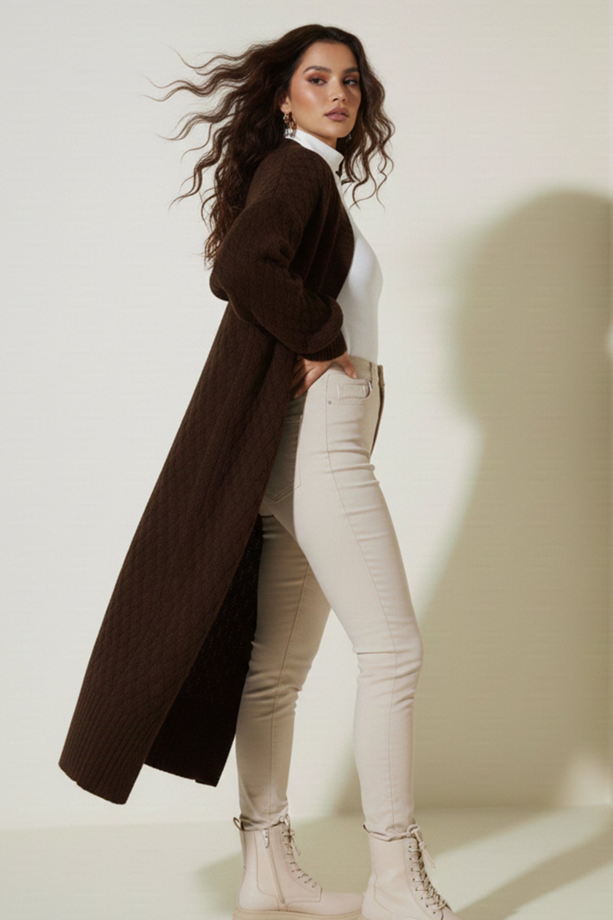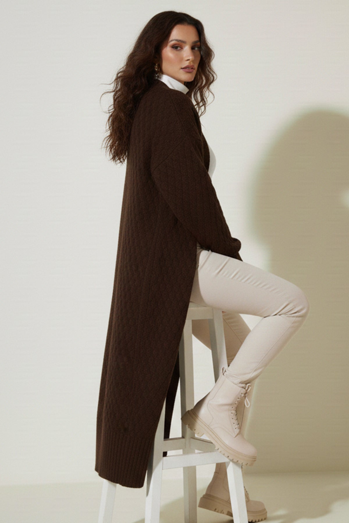 BNG Women Knitted Pattern Long Cardigan R4201 Brown - North Miami Beach