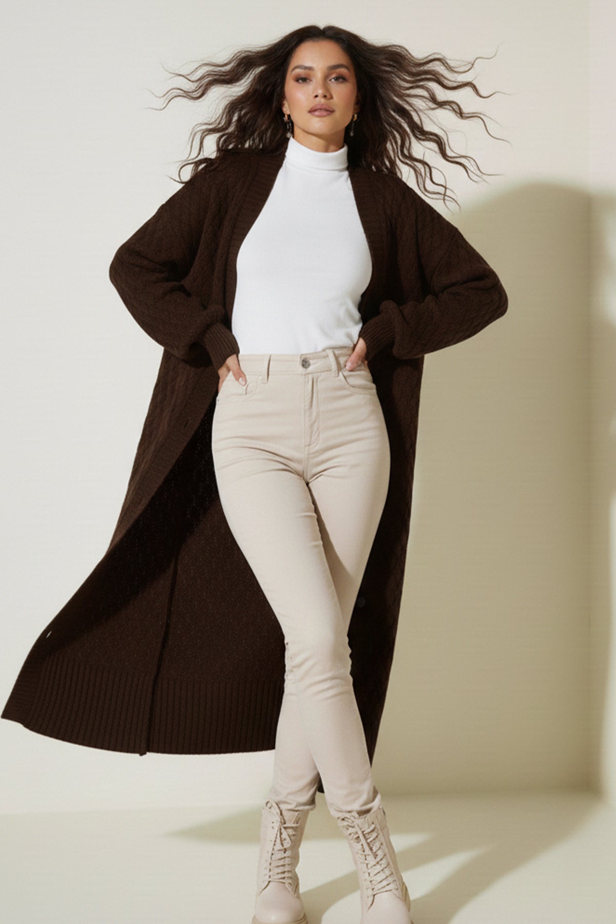 Ürün Bilgisi: Hırka Boy : 116 cm , Göğüs : 126 cm. Kumaş türü: %70 Akrilik %30 Yün Kumaş.Manken Ölçüleri: Boy: 168 cm, Göğüs: 83 cm, Bel:68 cm, Basen:90 cm.Mankenin üzerindeki ürün: Standart Bedendir.Ürün renginde konsept çekimlerinden dolayı ton farklılığı olabilir.