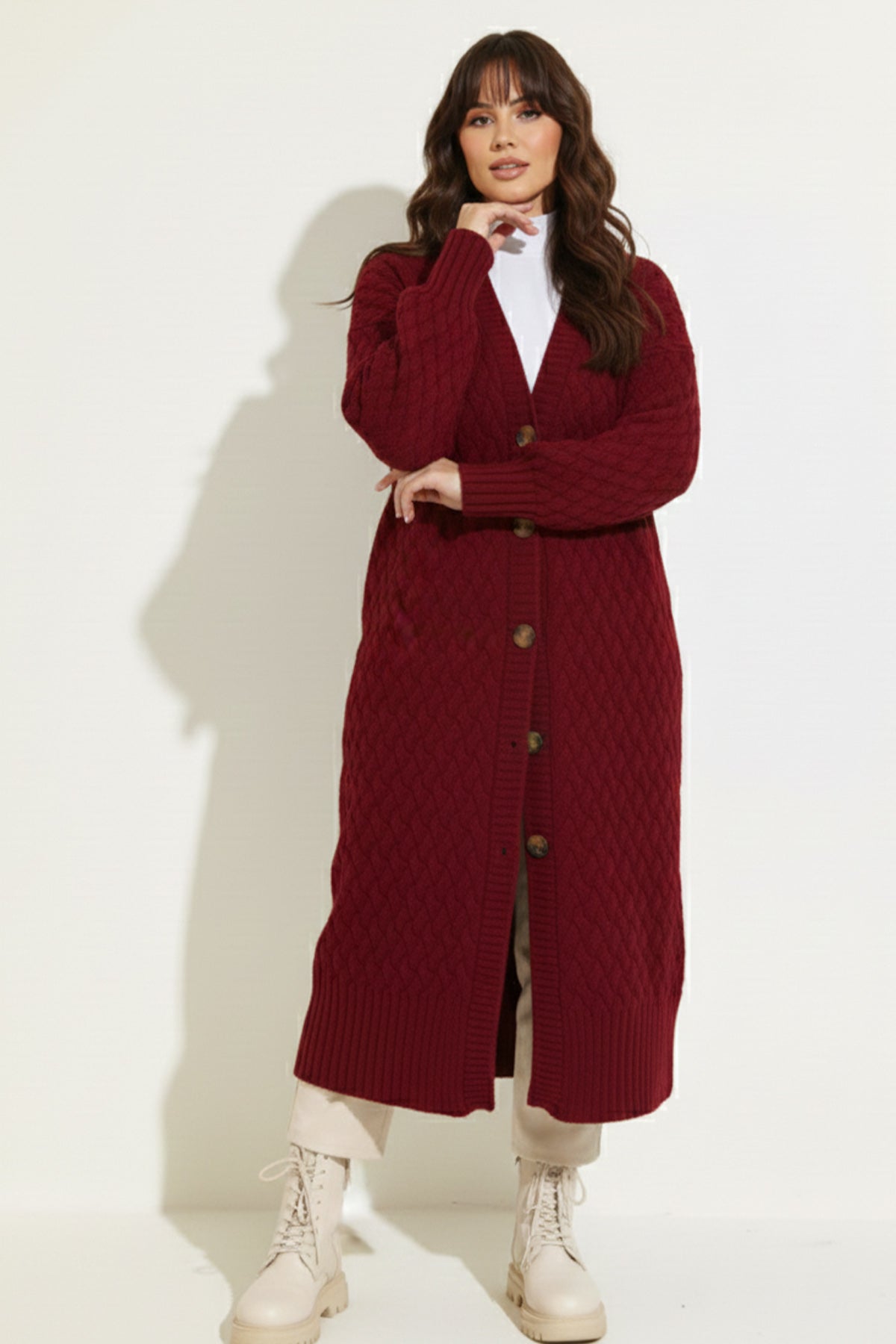 BNG Women Knitted Patterned Long Cardigan R4201 Burgundy - Margate