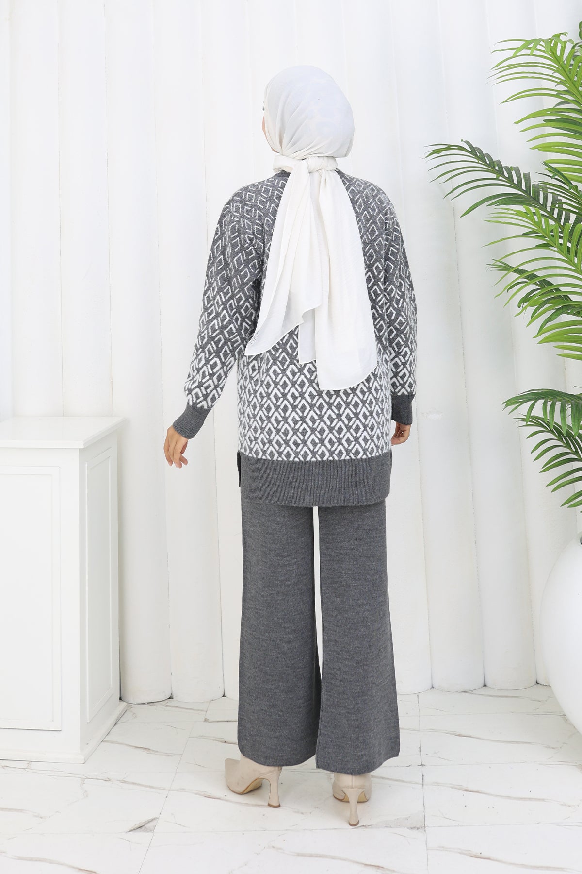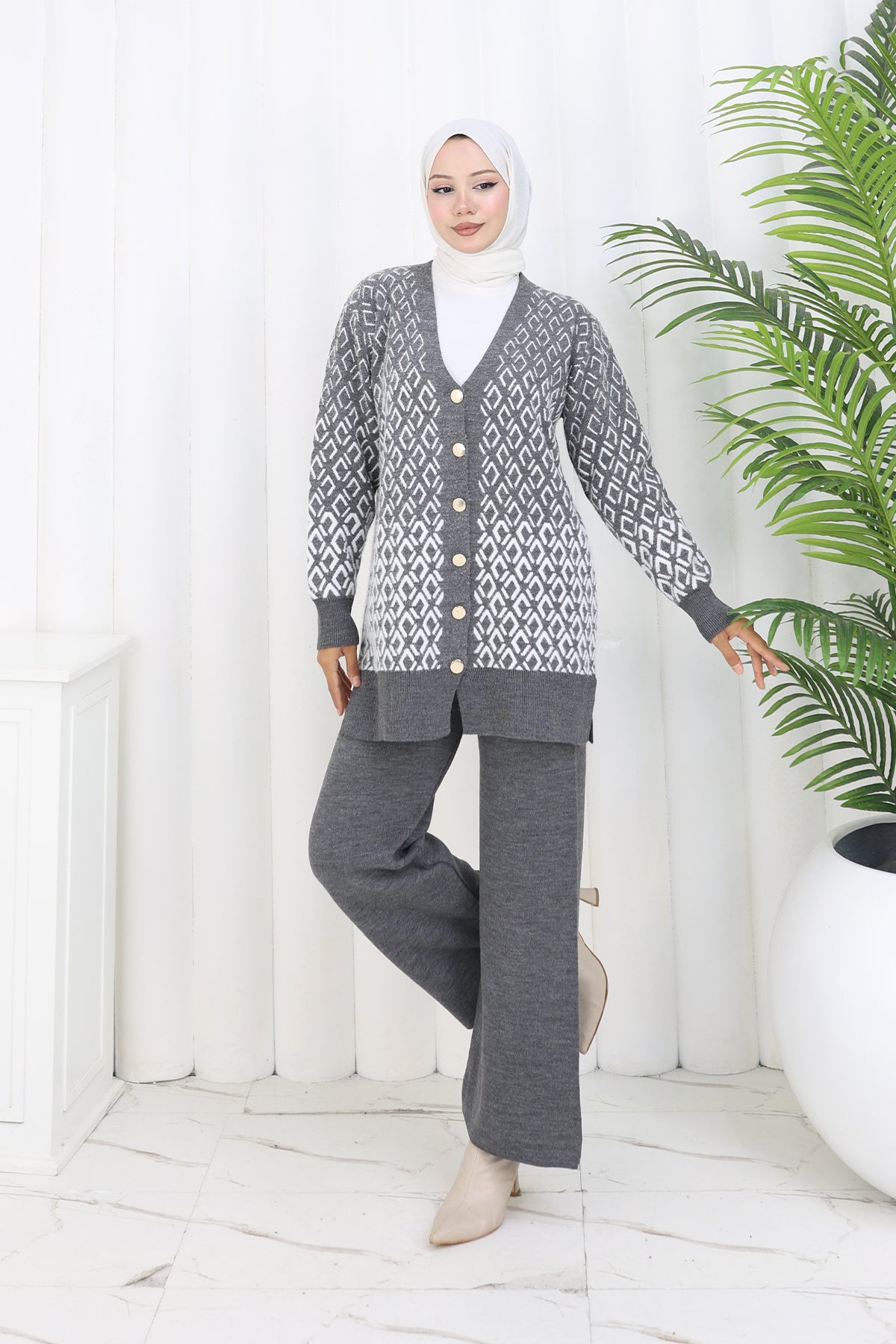 BNG Women Patterned Knit Cardigan Set S1044 Anthracite - Southampton