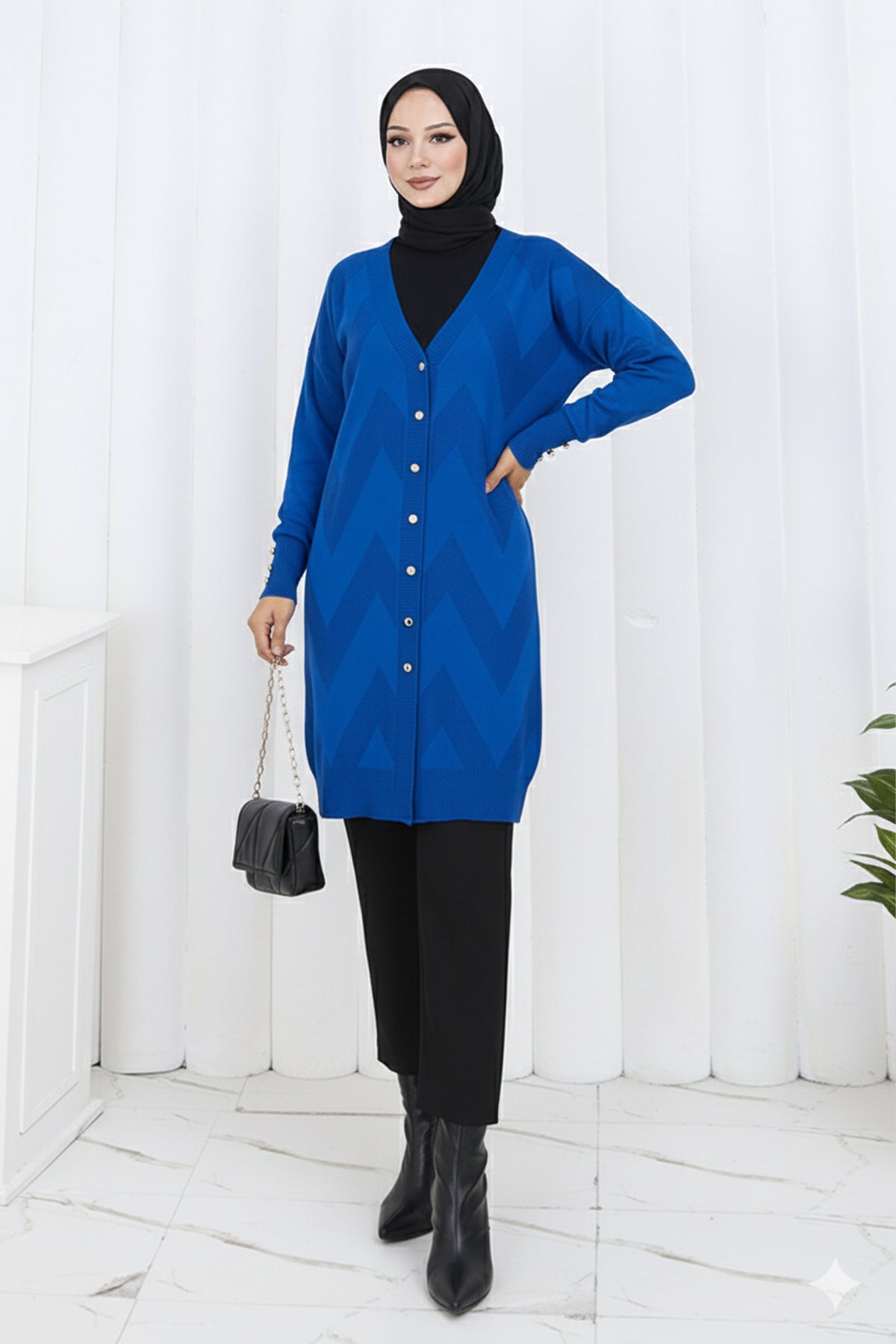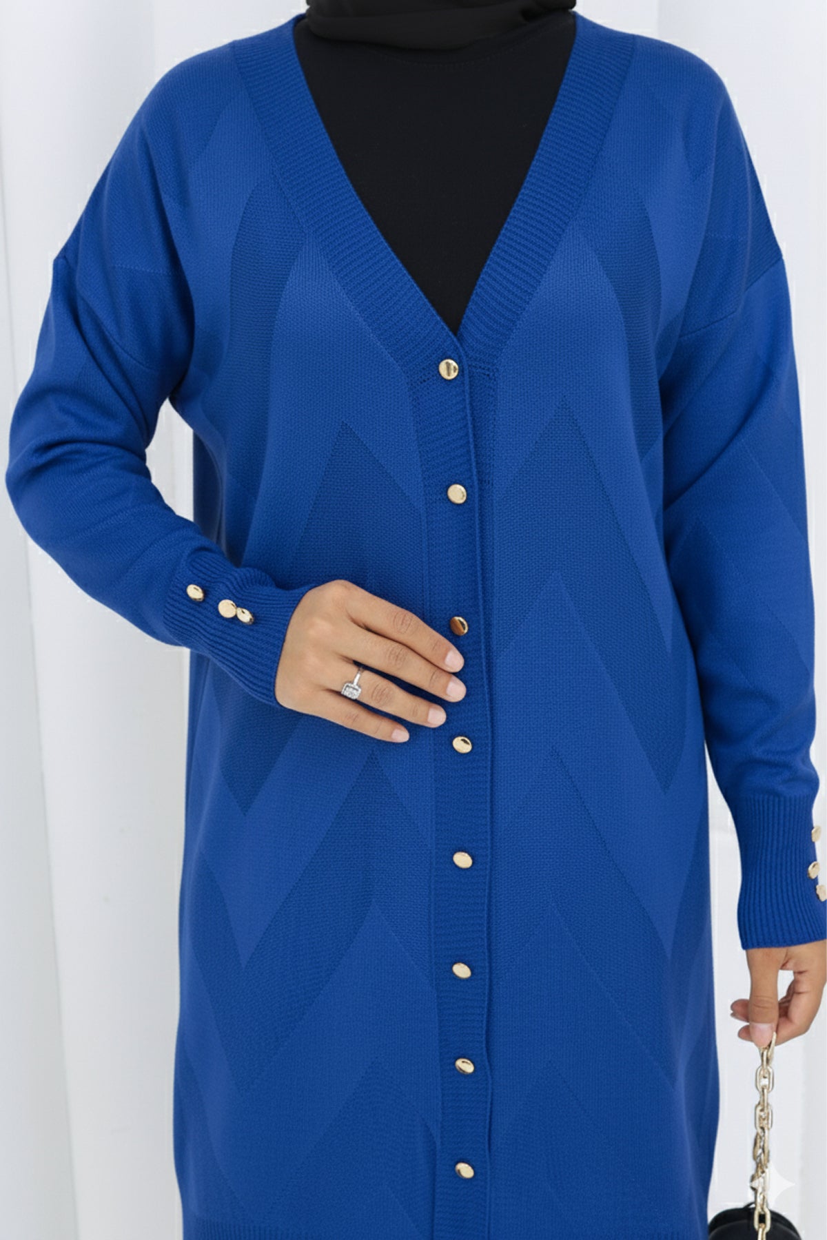 BNG Women Patterned Long Mercerized Cardigan N3193 Sax Blue - Reutlingen