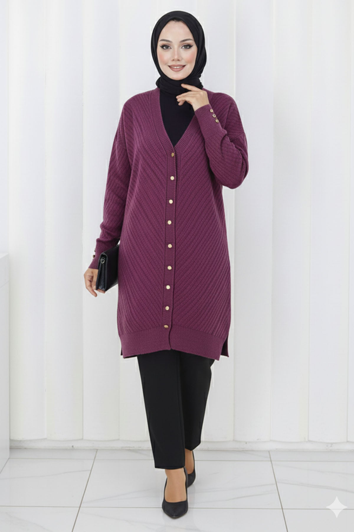 BNG Women Patterned Long Mercerized Cardigan N3198 Fuchsia - El Monte