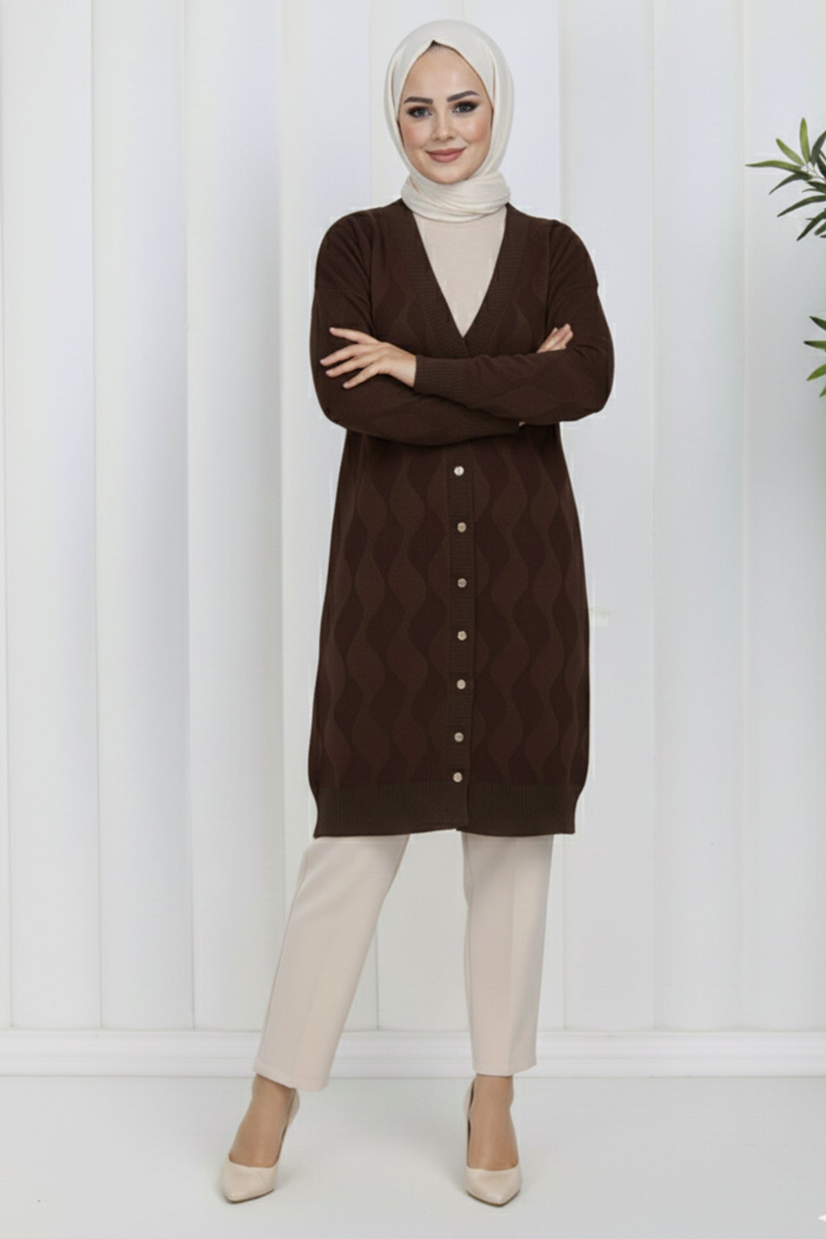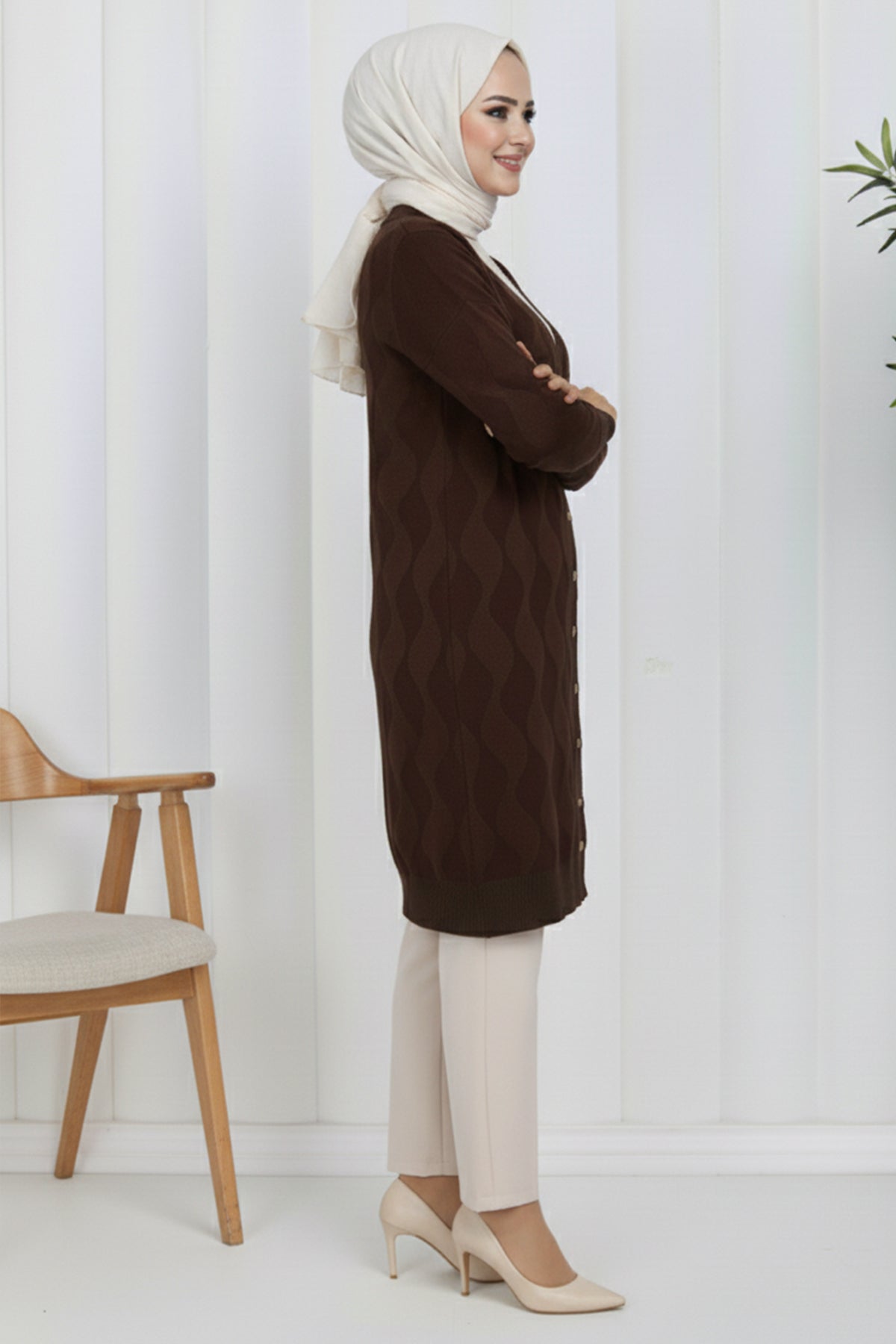 BNG Women Patterned Long Mercerized Cardigan N3239 Brown - Misantla