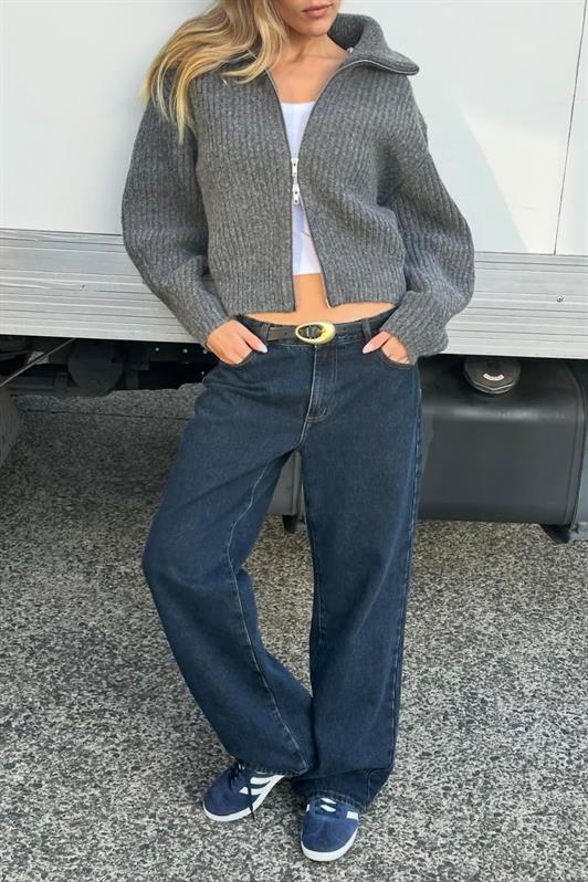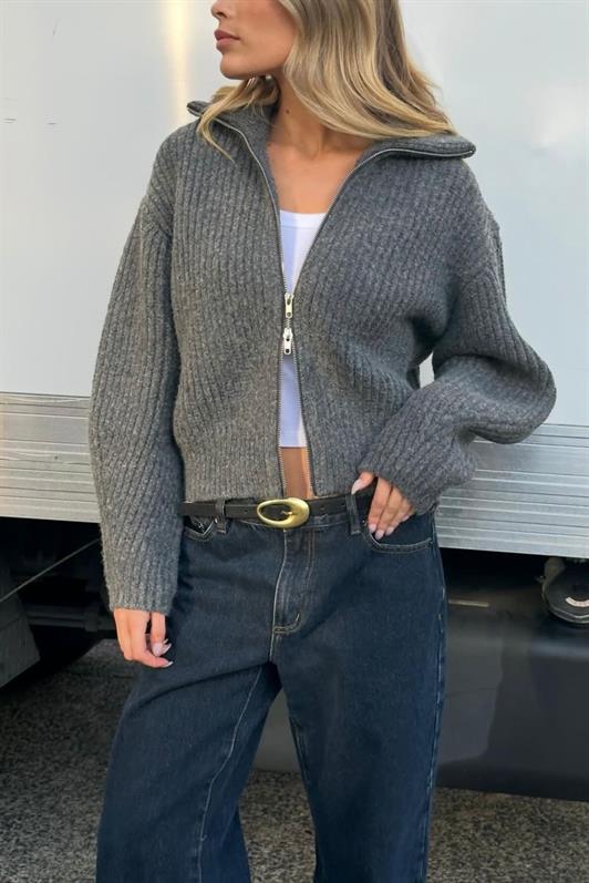 MDX Anthracite Double Zippered Women's Knit Cardigan Mg2532 - Chieri