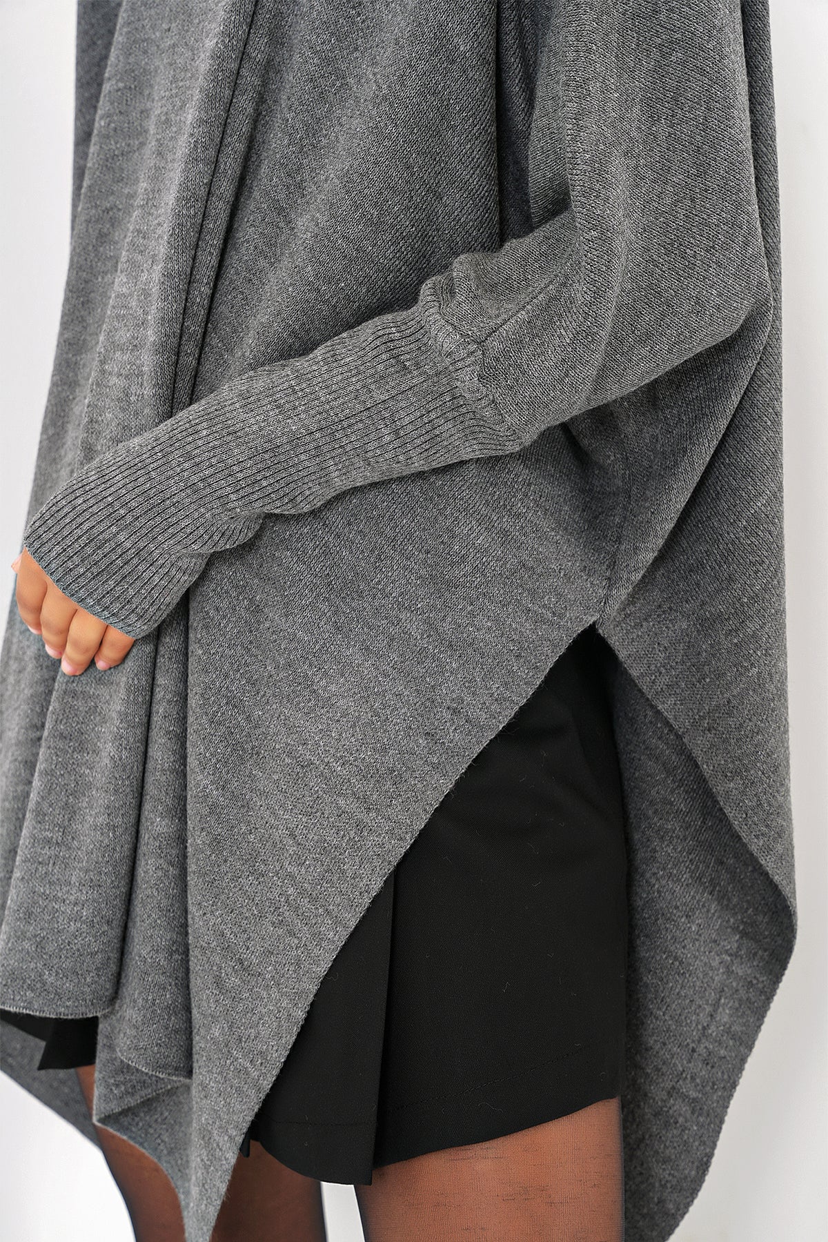 BGD Women Slit Poncho Sweater - Light Grey - Princeton