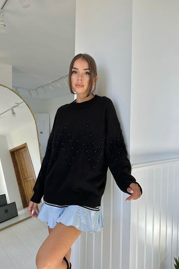 ELS Zigzag Beaded Sweater - Black - Edinburgh