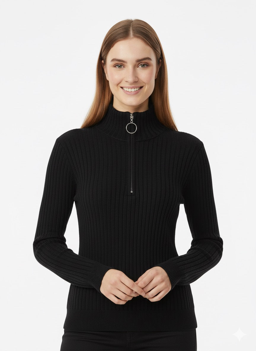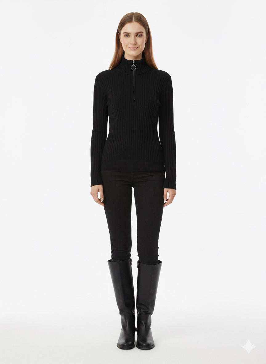 MPL Kadın Fermuarlı Gömlek Yaka Sweat 21986 - Salem