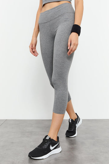 TMY Gray Melange High Waist Capri-Crop Tank Top Slim Fit Women's Leggings Set - 95284 - Cantanhede