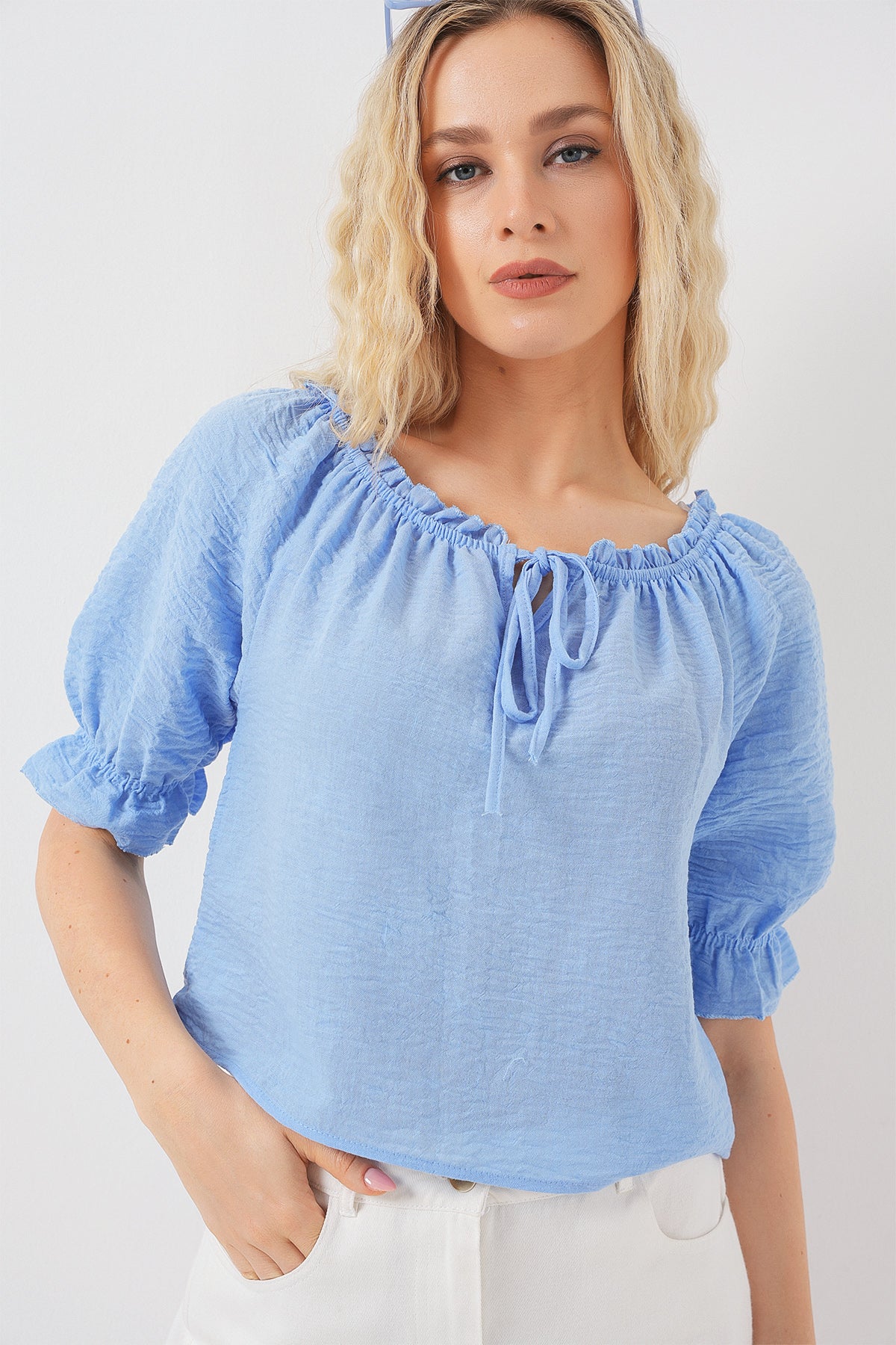 BGD Women Women's Ruffle Detail Blouse 959 - Blue - Leith