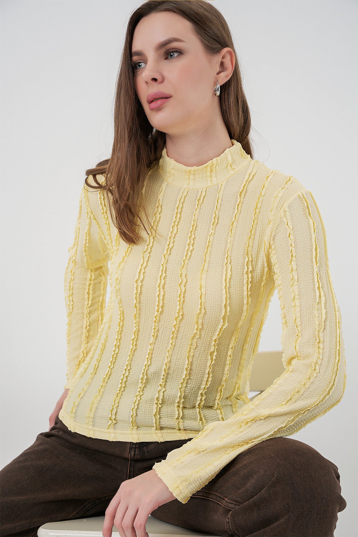 BGD Women Women's Textured Flexible Knit Blouse 975 - Yellow - Kehl