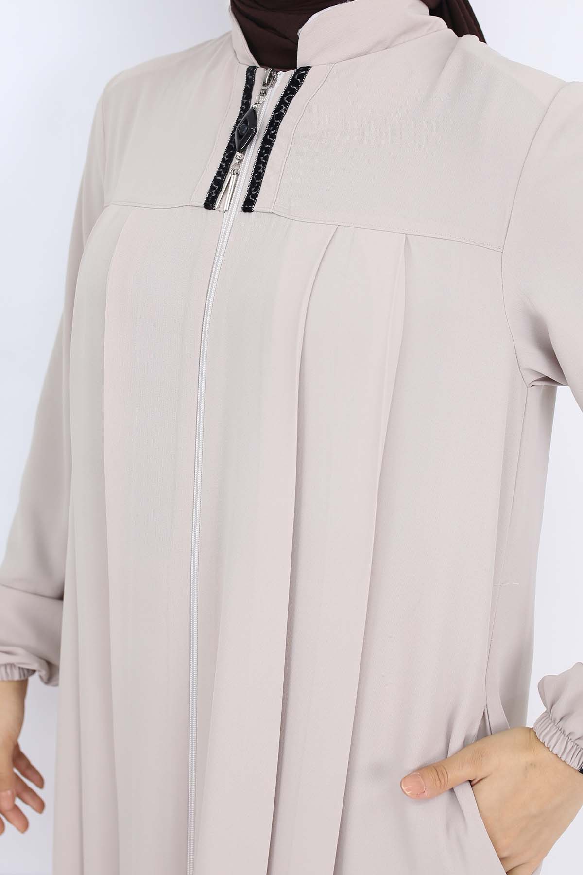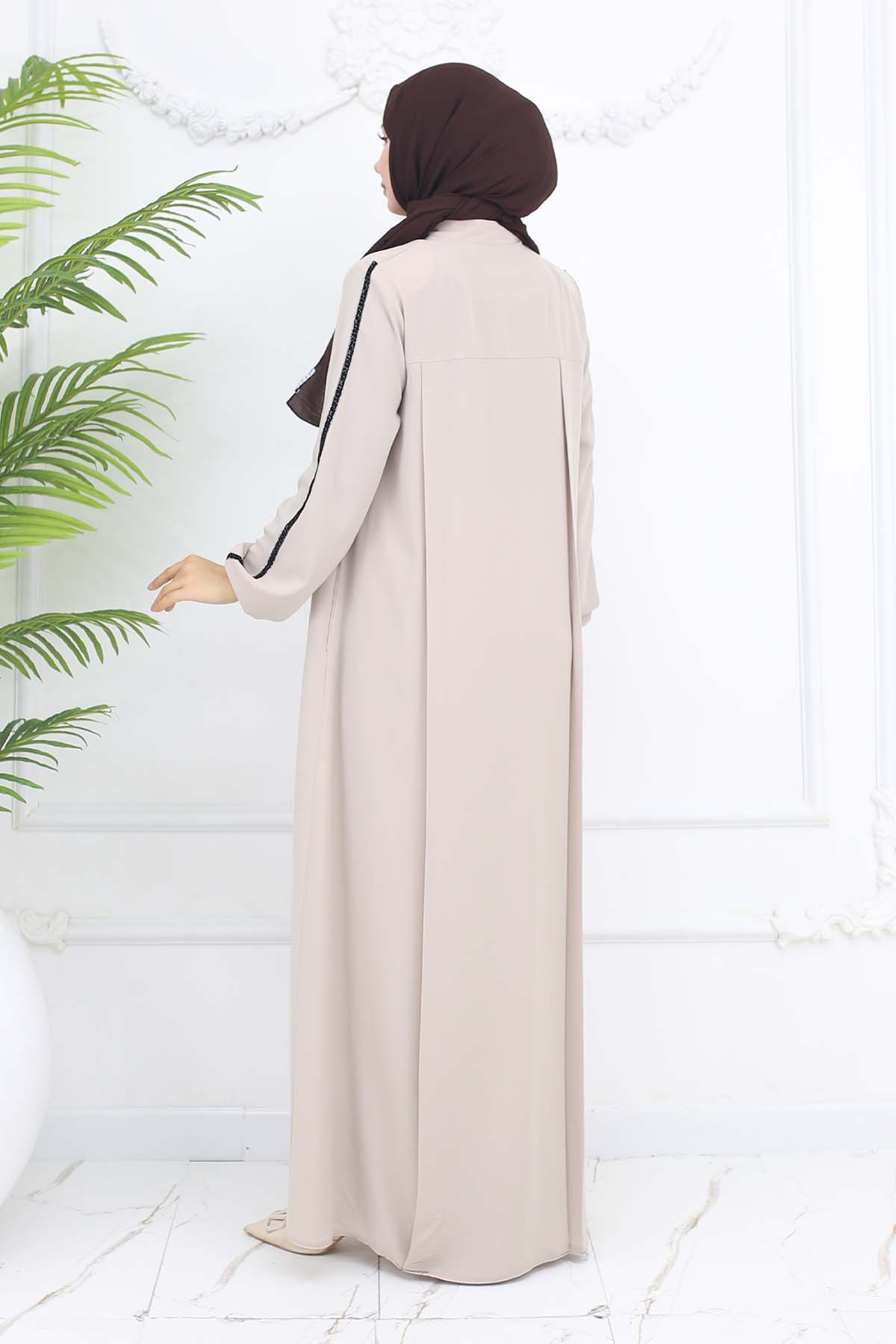 BNG Women Şerit Detaylı Robalı Ferace Taş Rengi 1007 - Topeka