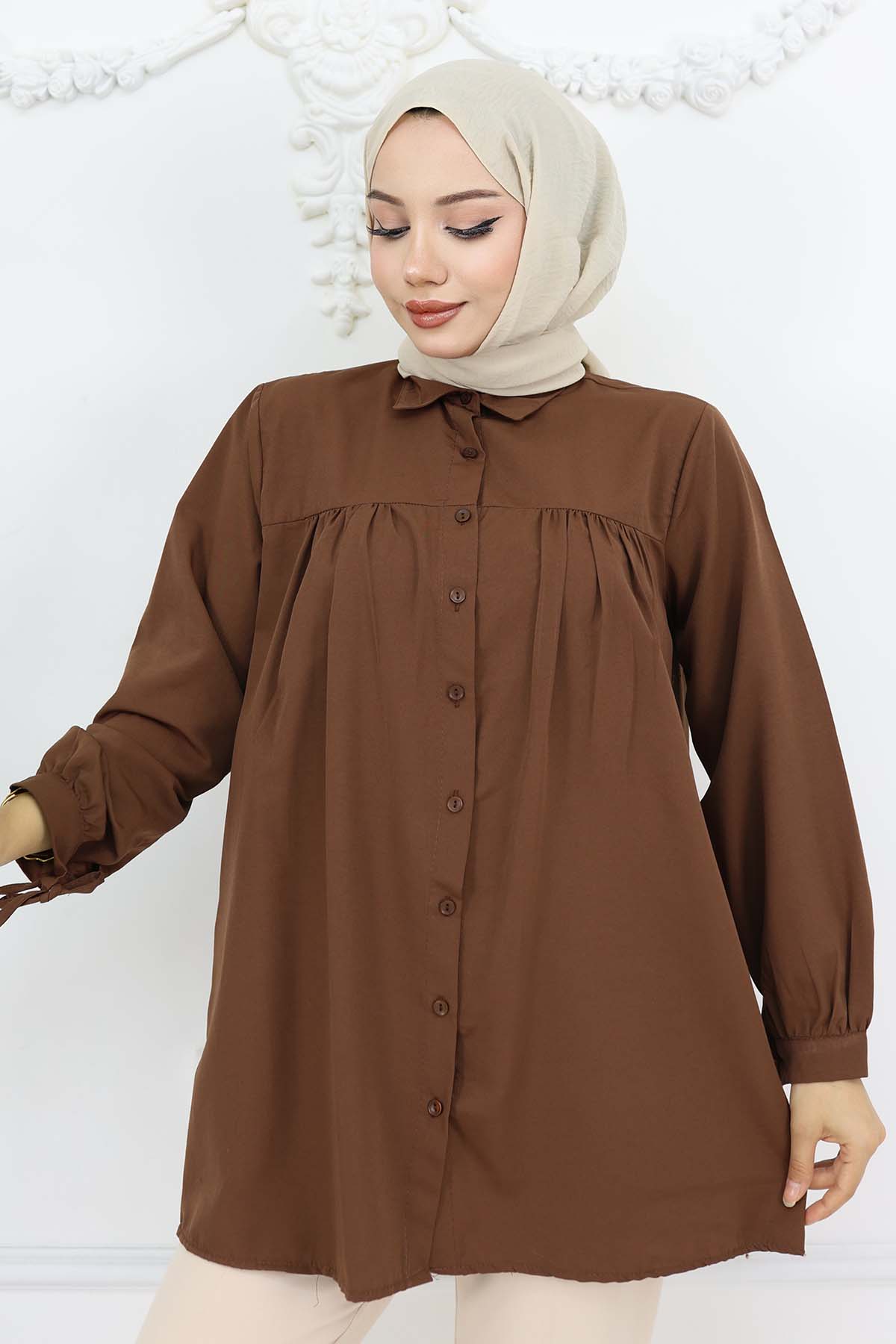 BNG Women Tied Sleeve Modest Shirt Brown 12030 - Yuzhnoukrainsk