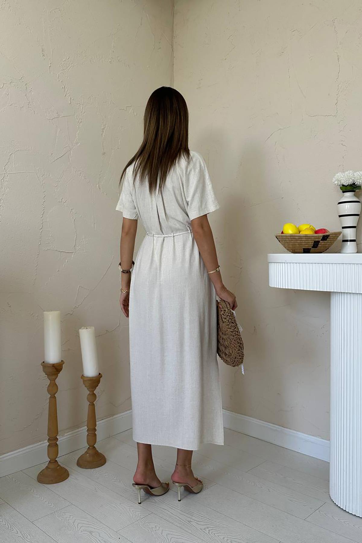 ELS Toptan Bej Salaş Keten Elbise - Kempten