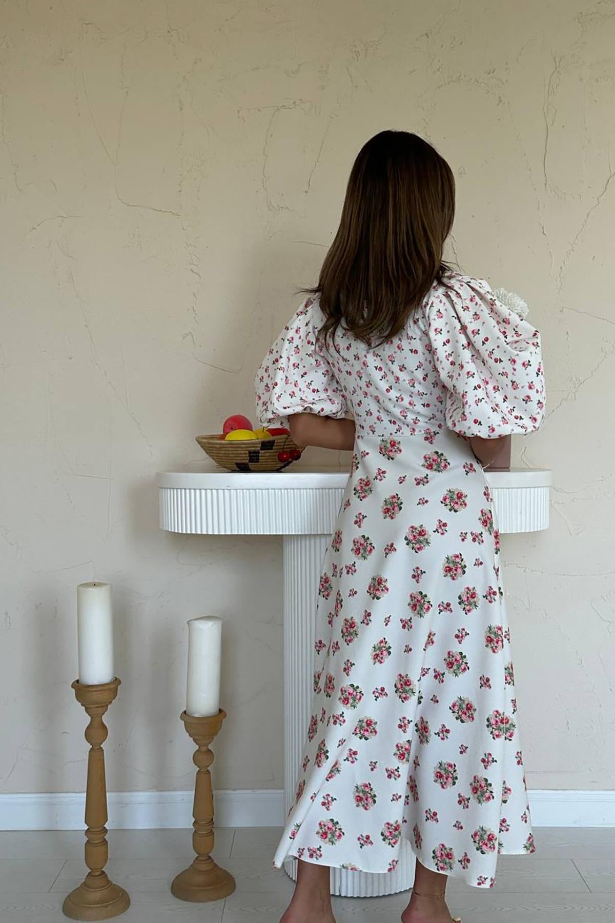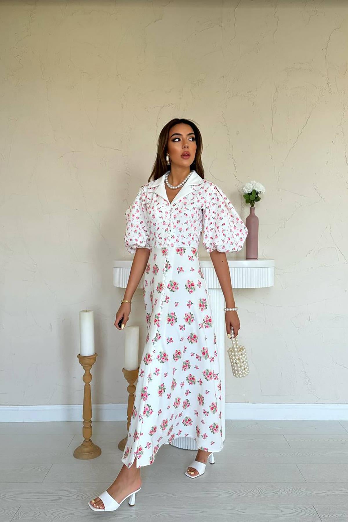 ELS Toptan Ekru Dijital Baskılı Elbise - Lehi