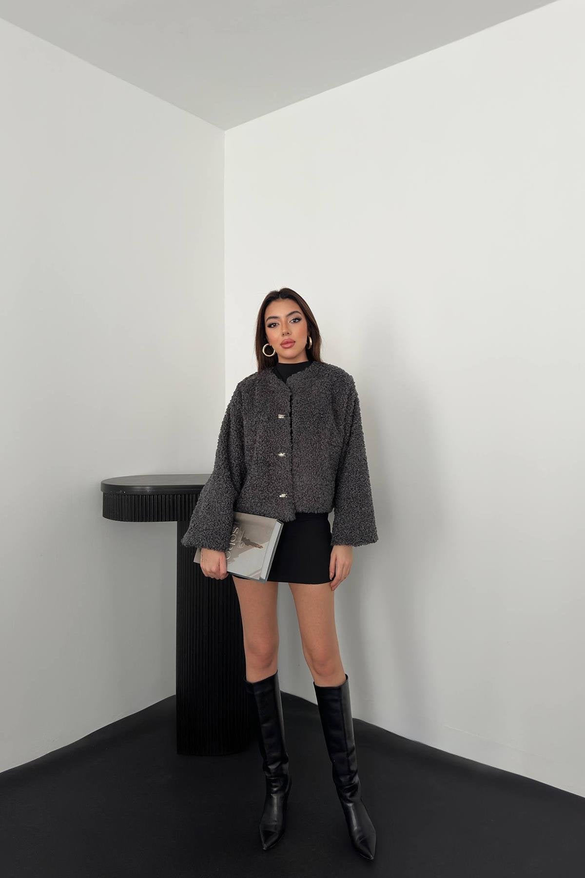 Wholesale Smoke Plush Short Jacket