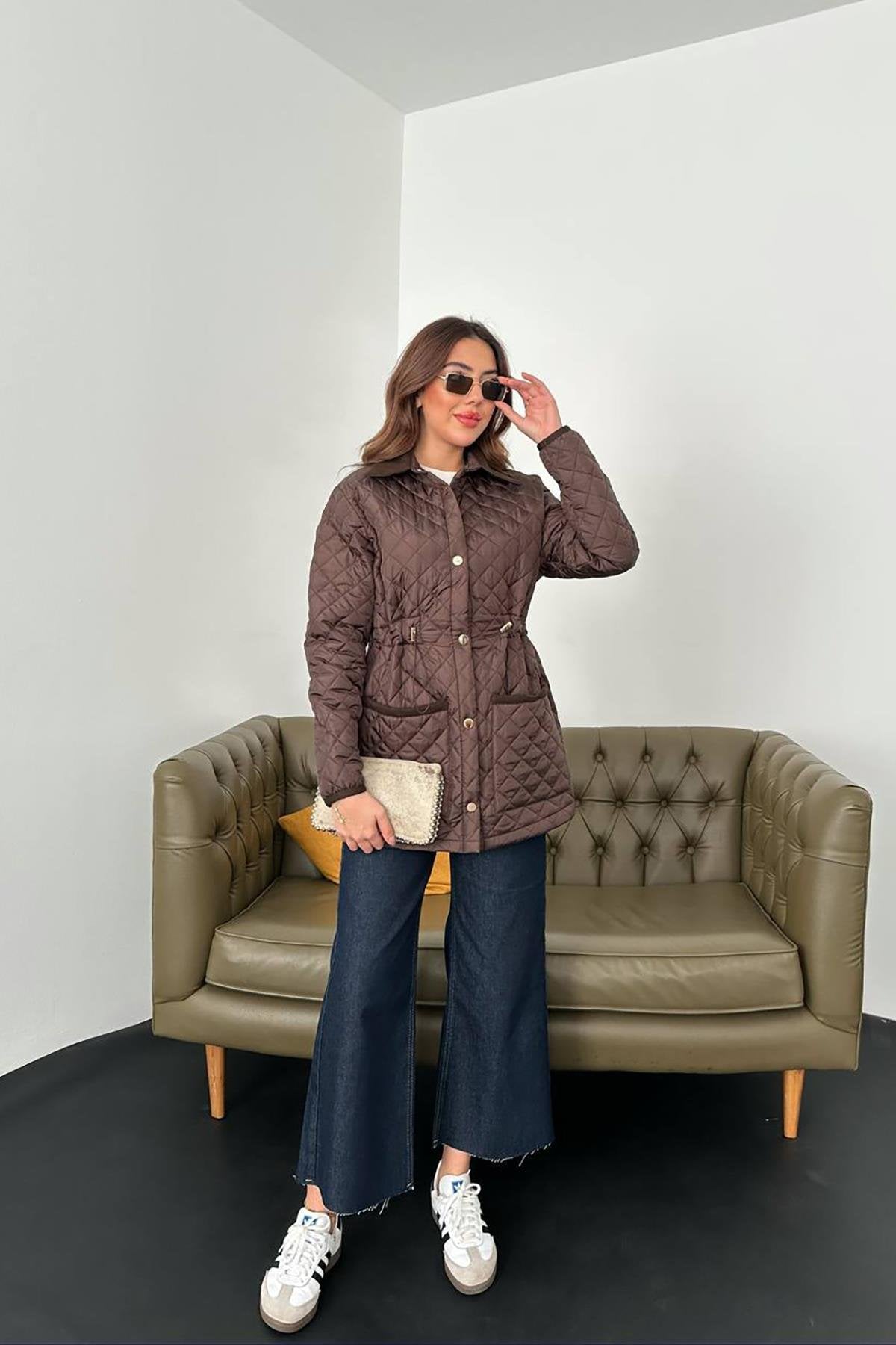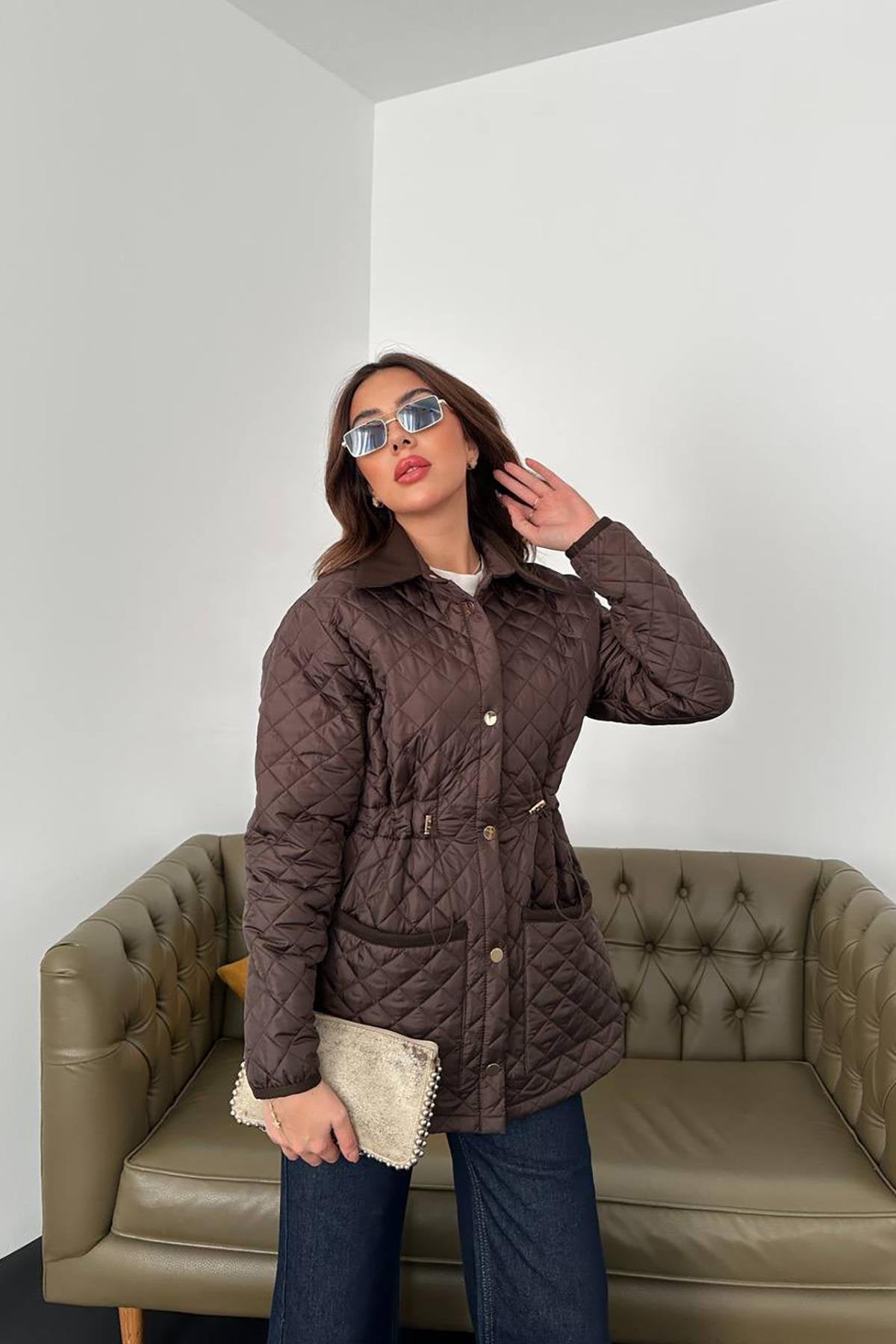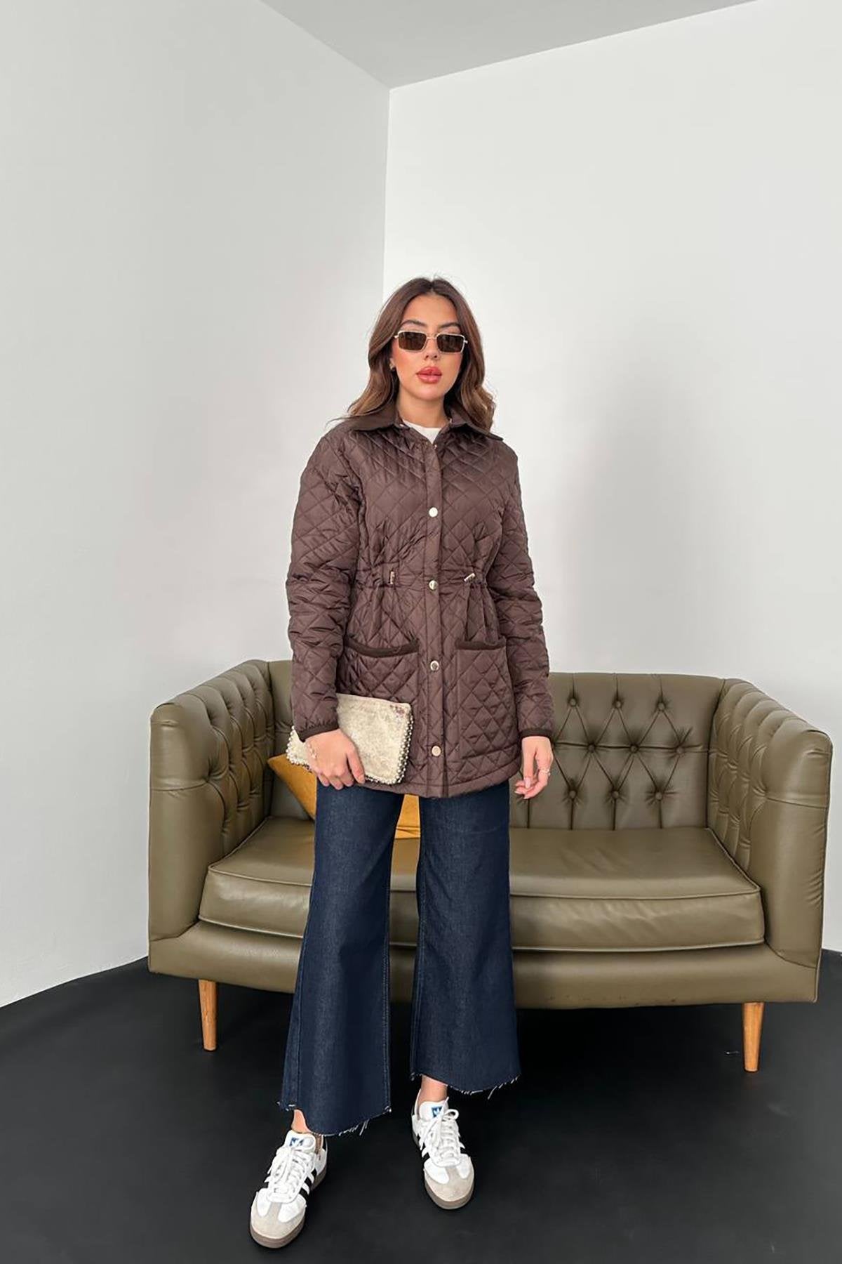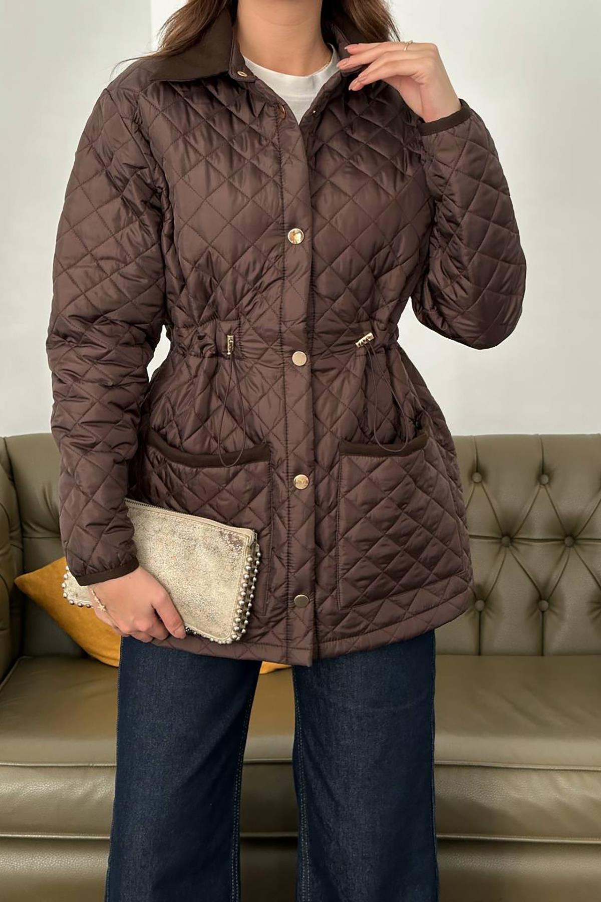 ELS Toptan Kahverengi Yakası Süet Kapitone Ceket - Elgin