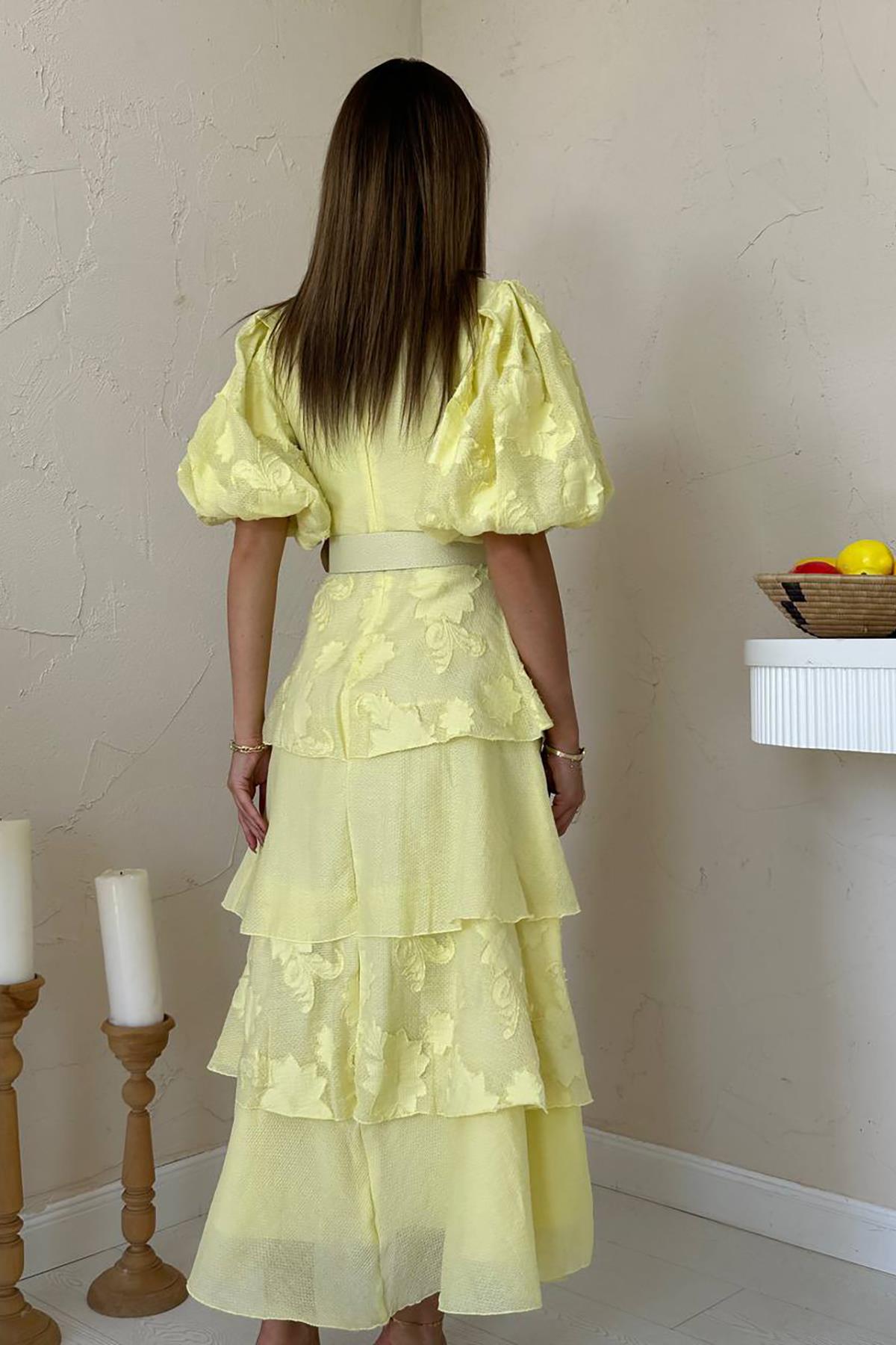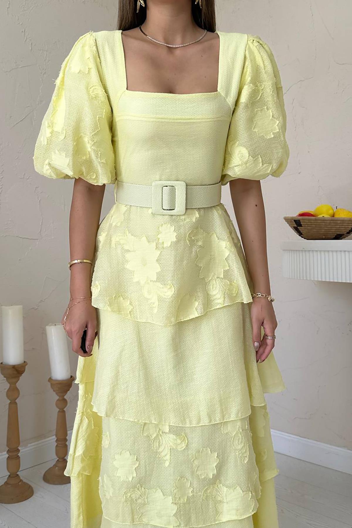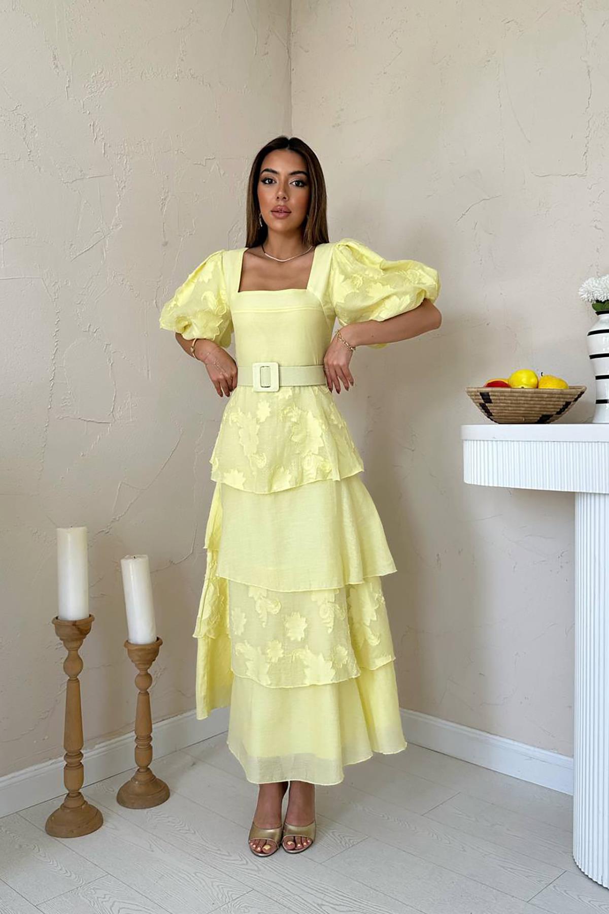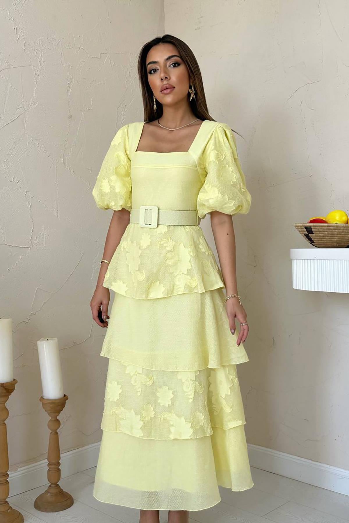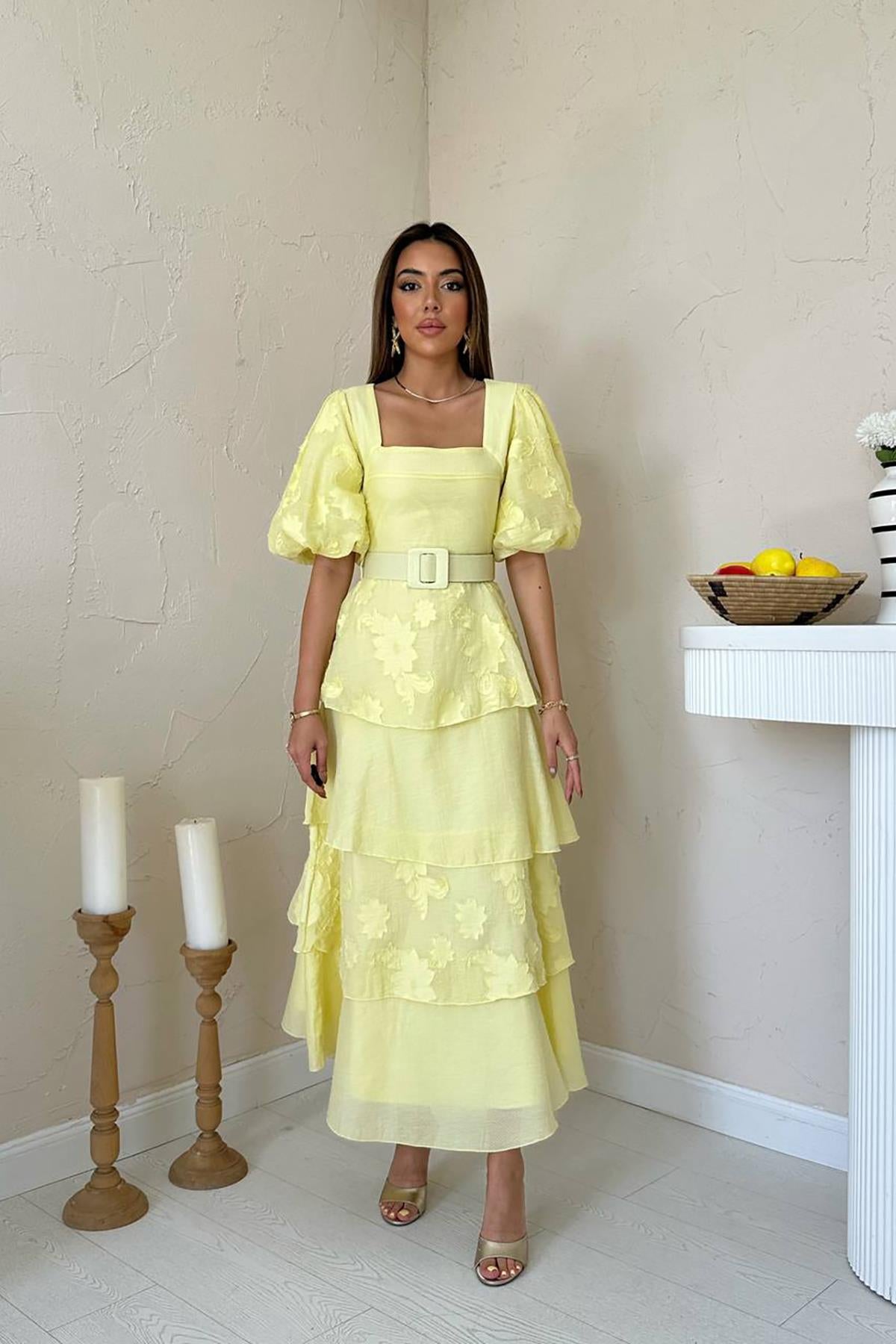 ELS Toptan Sarı Balon Kollu Kat Kat Elbise - Brindisi