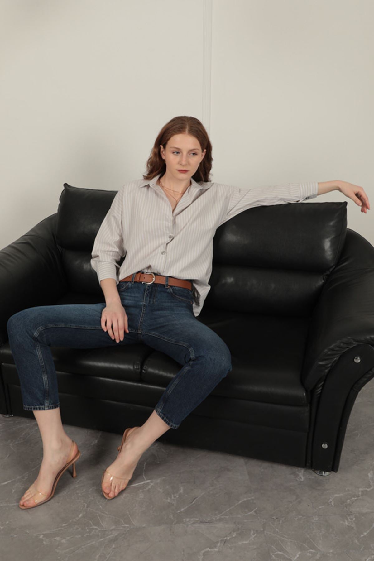 Specifications: - Color: Stone - Size: S-M-L-XL-XXL - Printing: Striped Print - Fabric: Jesica Fabric - Types Of Sleeves: Long Sleeve - Types Of Collars / Necks : Shirt Collar - Length: Standart - Fit: Straight