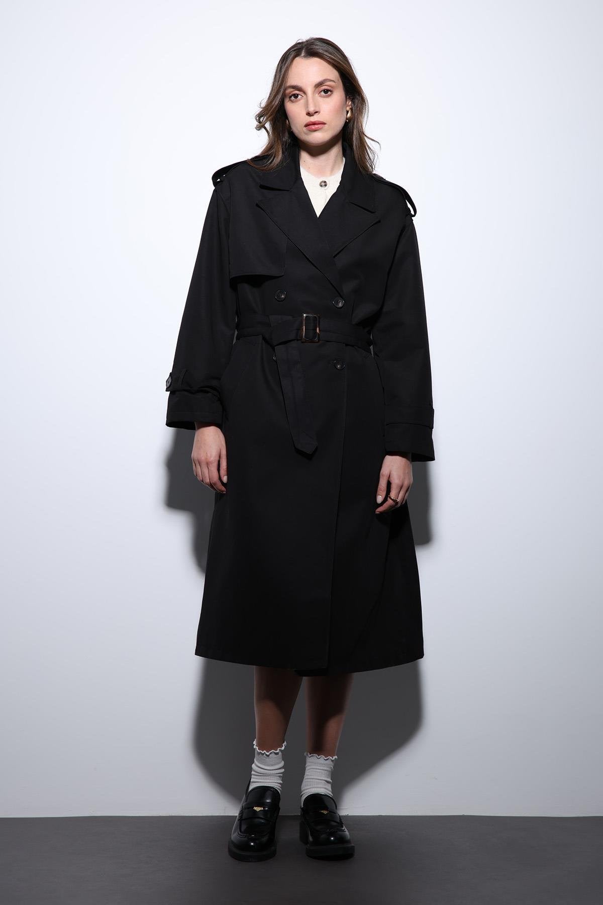 ANT Antioch Black Double-Breasted Belted Women's Trench Coat - Smyrna