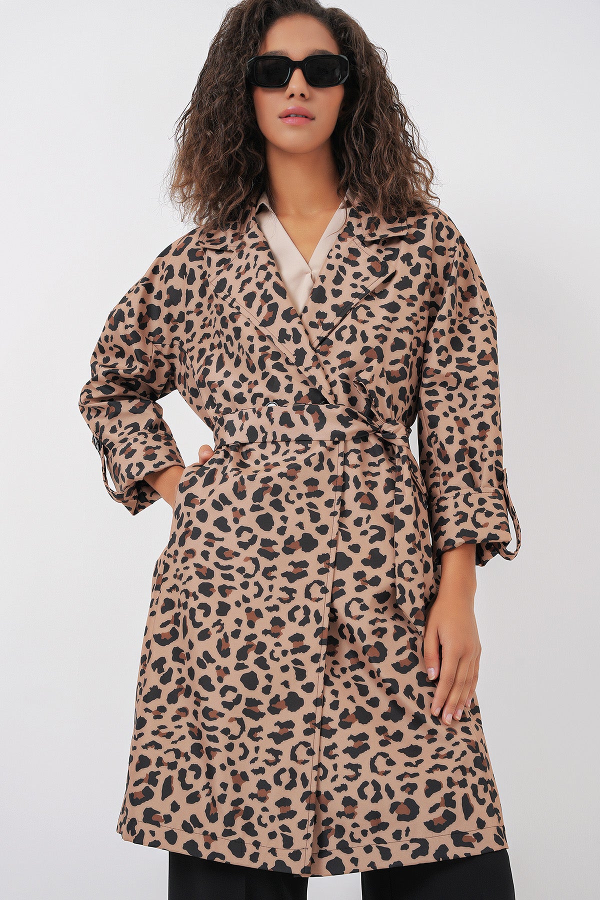 Lined Wrap Neck Trench Coat