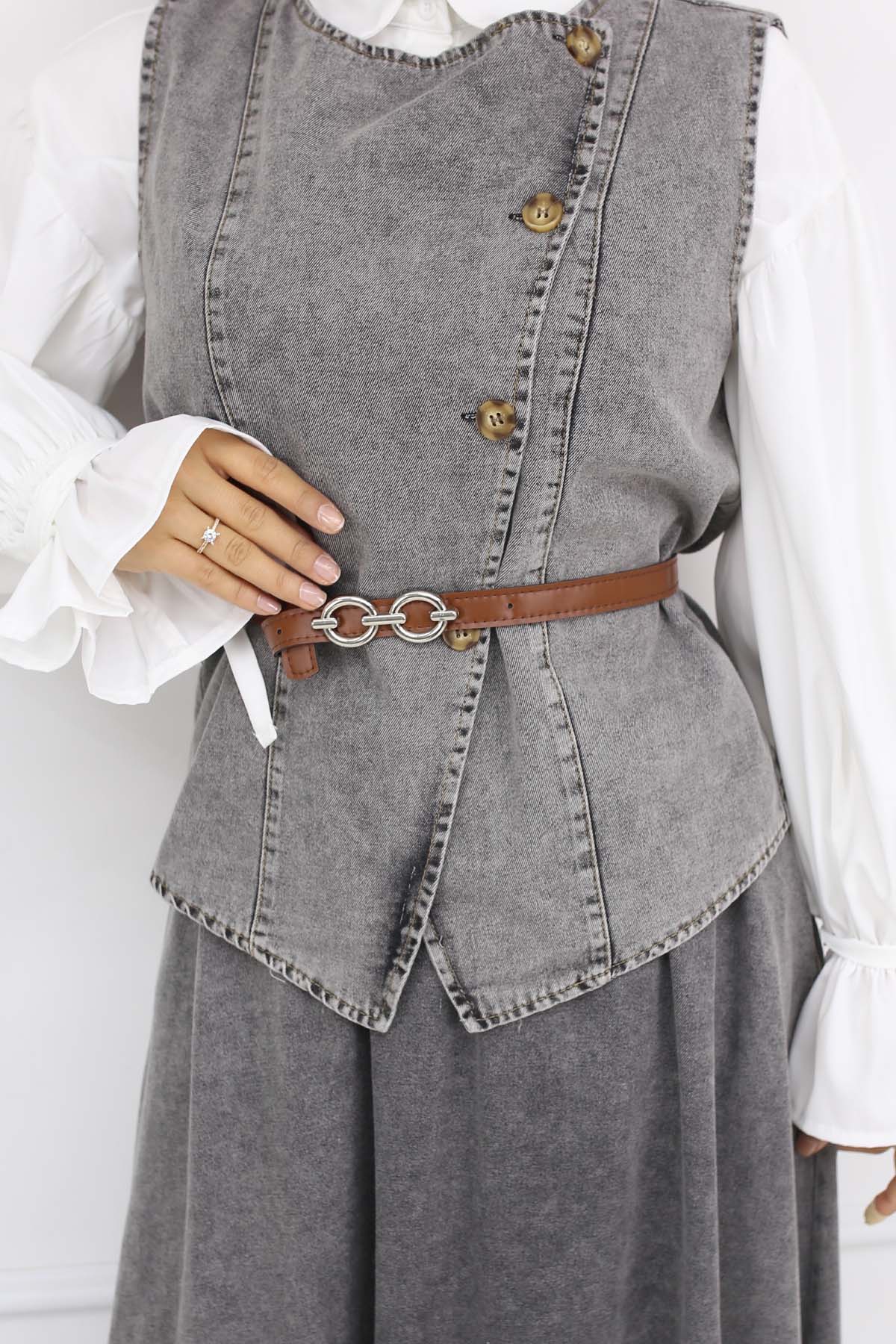 BNG Women Vest Skirt Duo Denim Suit Gray 357 - Joué-lés-Tours