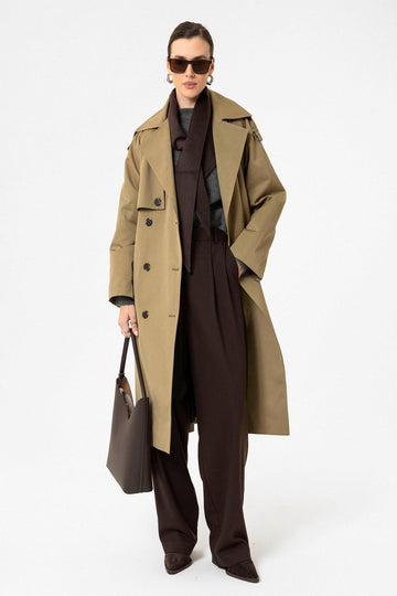ANT Antioch Beige Women's Belted Long Trench Coat - Yucaipa