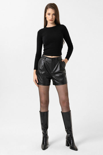 ANT Antioch Black Women's Faux Leather Women's Shorts - Chiclana de la Frontera