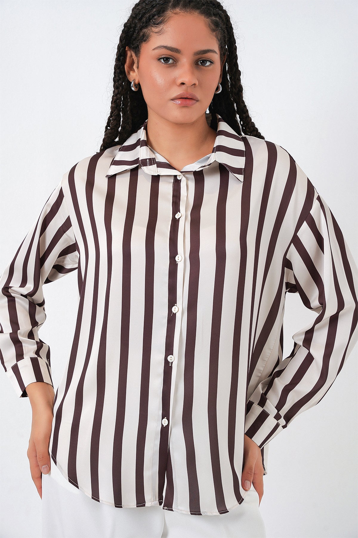 BGD Women Hafif Dökümlü Saten Gömlek - M. Kahverengi - Garden Grove