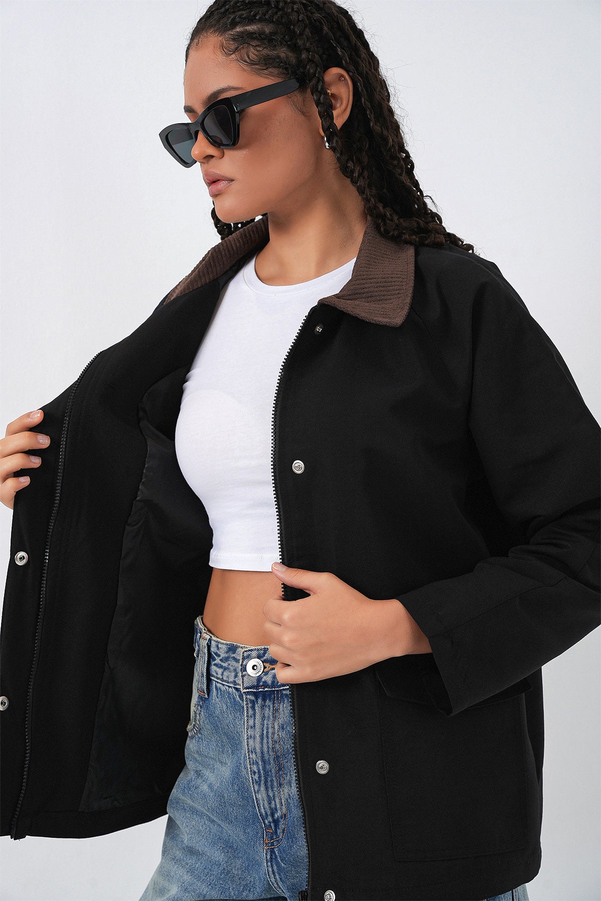 BGD Women Kadın Cep Detaylı Oversize Ceket 5973 - Siyah - Camberley
