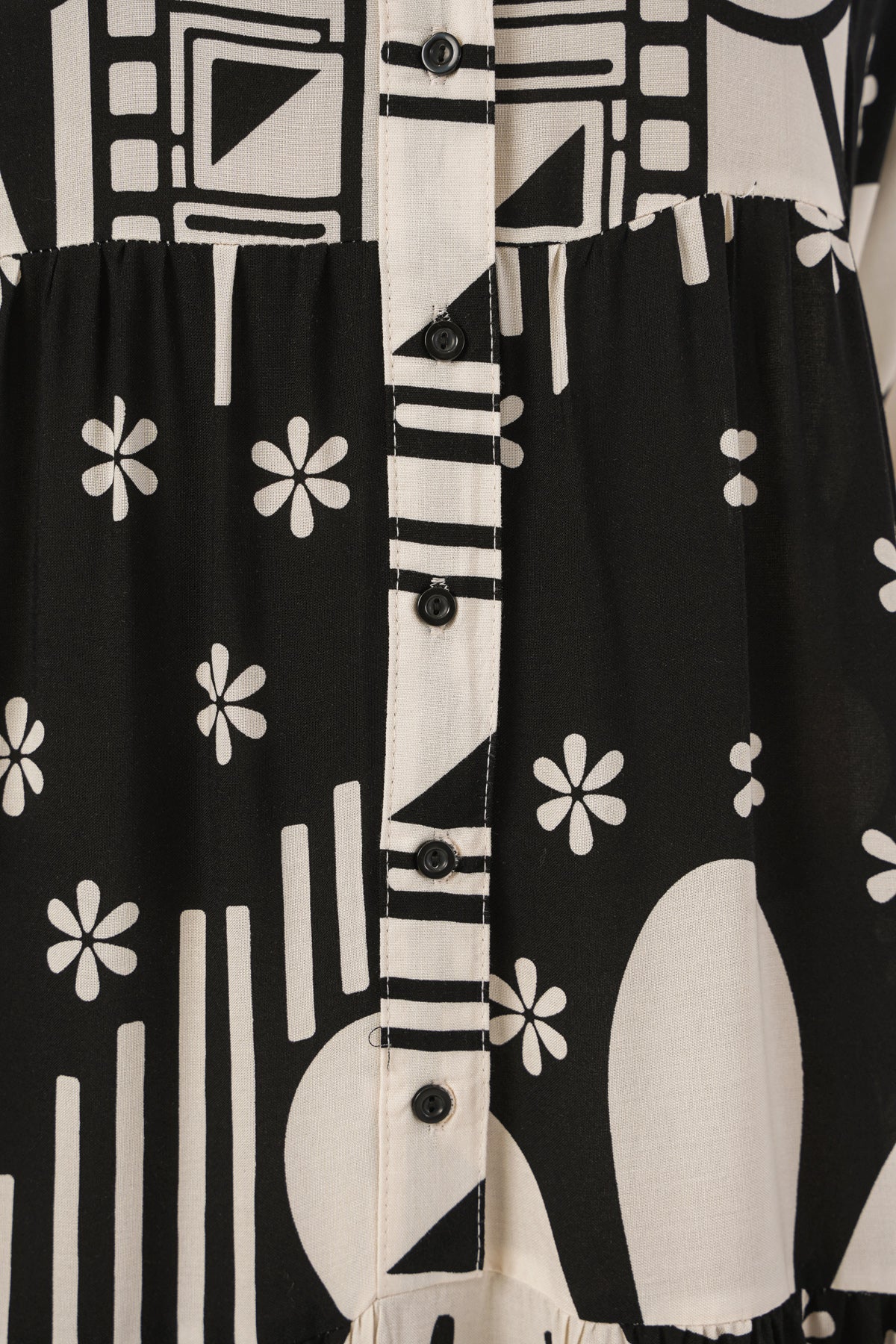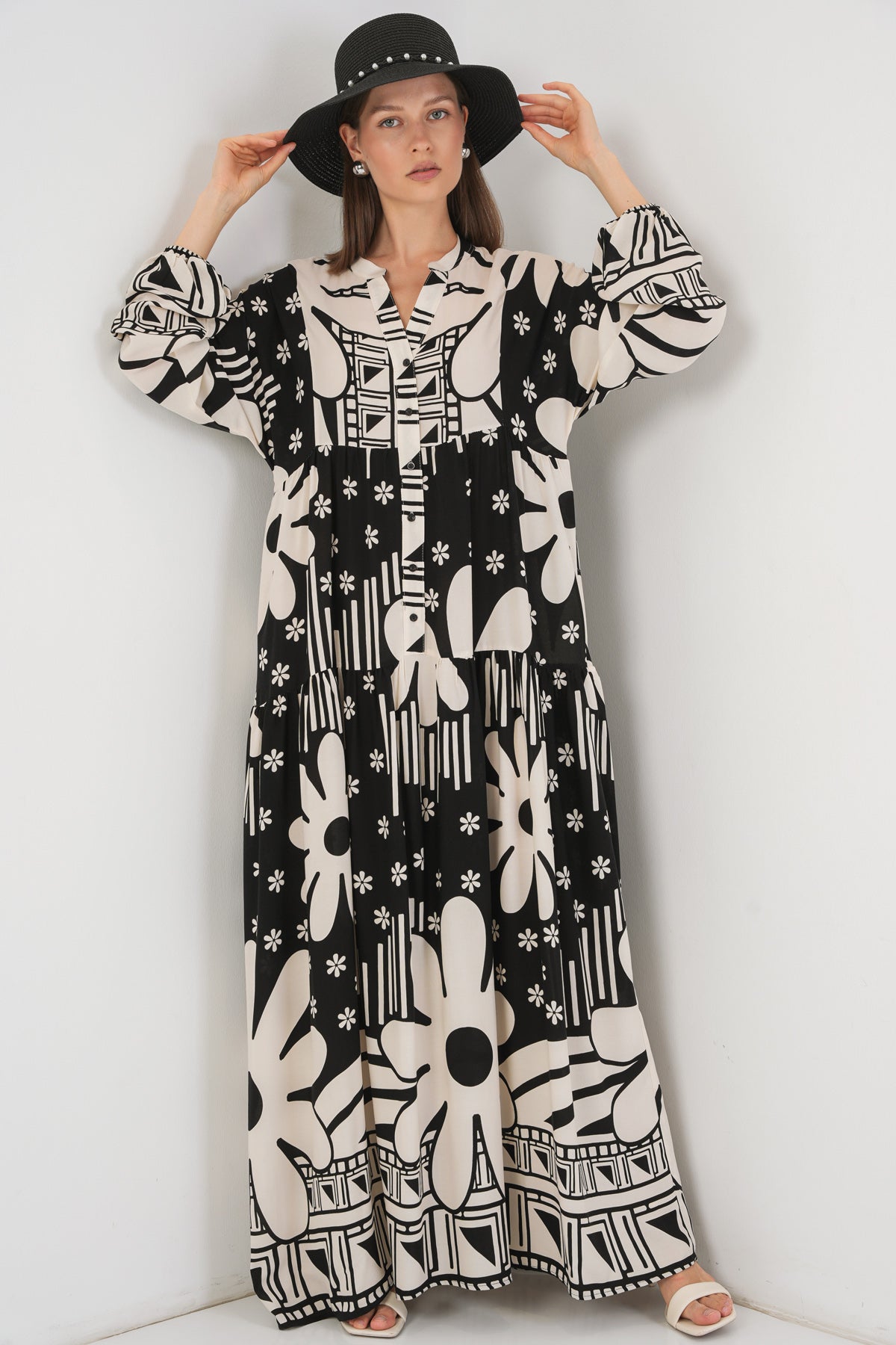 BGD Women Kadın Desenli Uzun Tesettür Elbise 2585 - D. Siyah - Horizon West