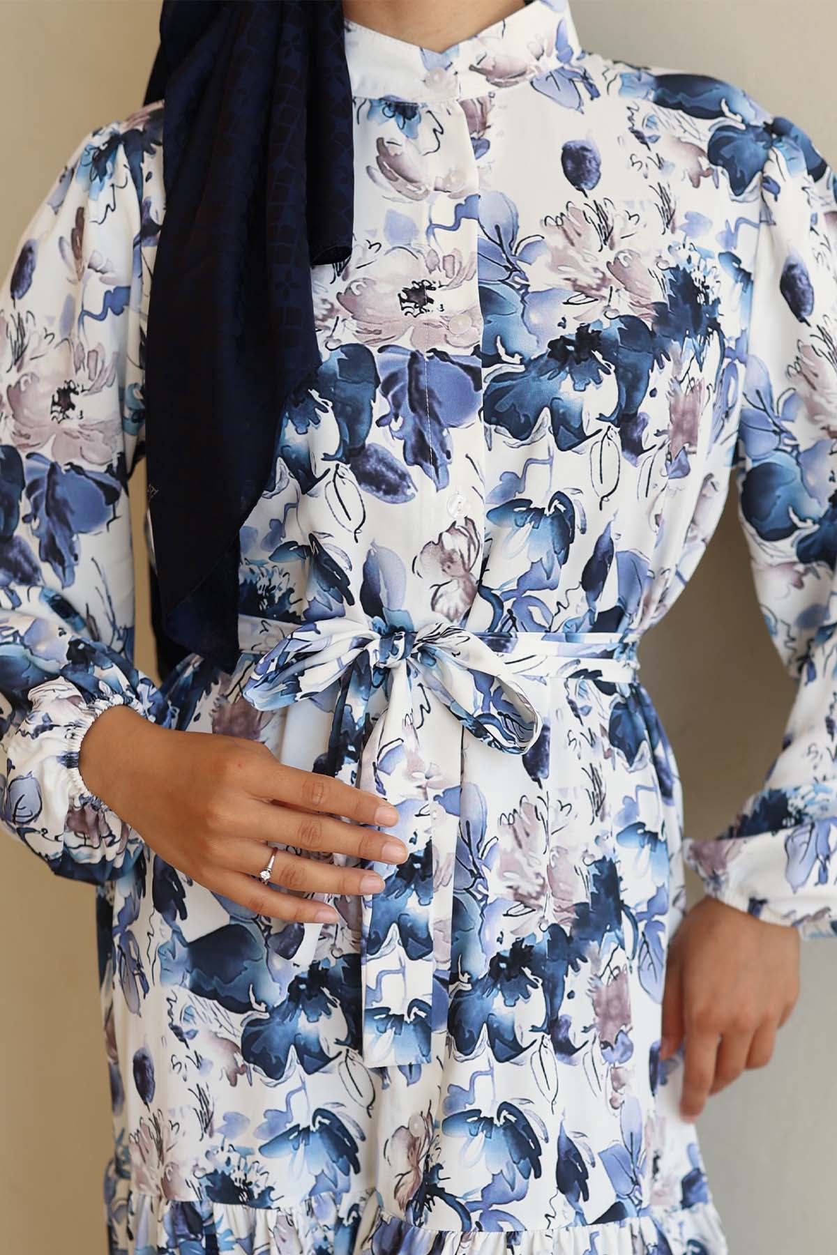 BGD Women Kadın Desenli Uzun Tesettür Elbise 2586 - Lacivert - Walton upon Thames