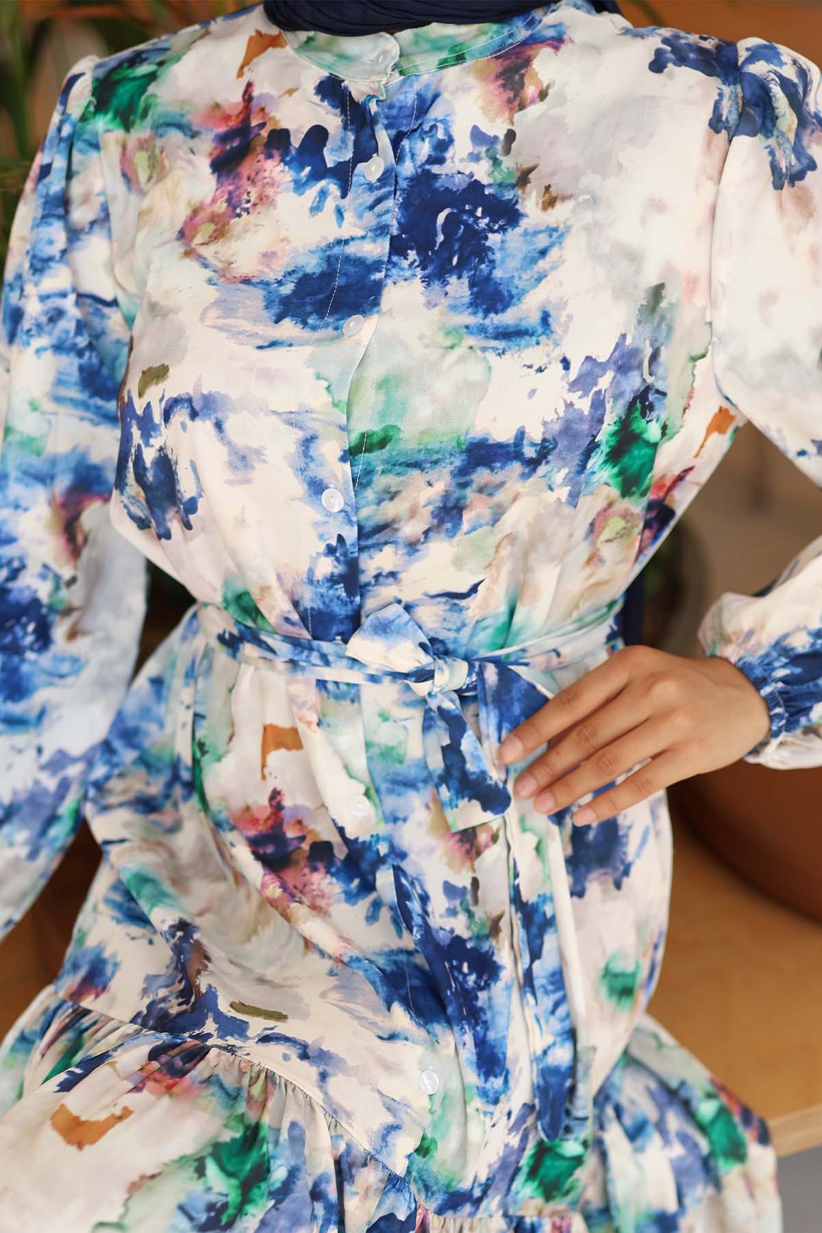 BGD Women Kadın Desenli Uzun Tesettür Elbise 2586 - Saks - Arnsberg