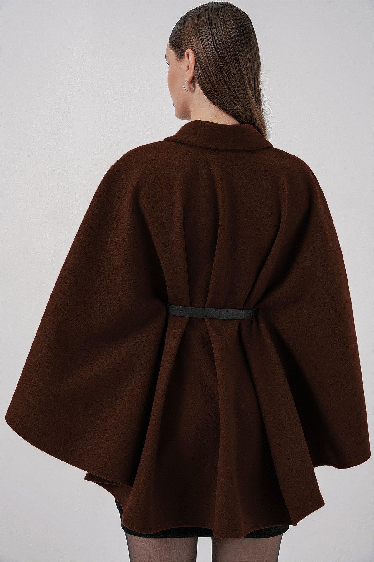 BGD Women Kadın Kemerli Kaşe Panço 9170 - Kahverengi - Stow