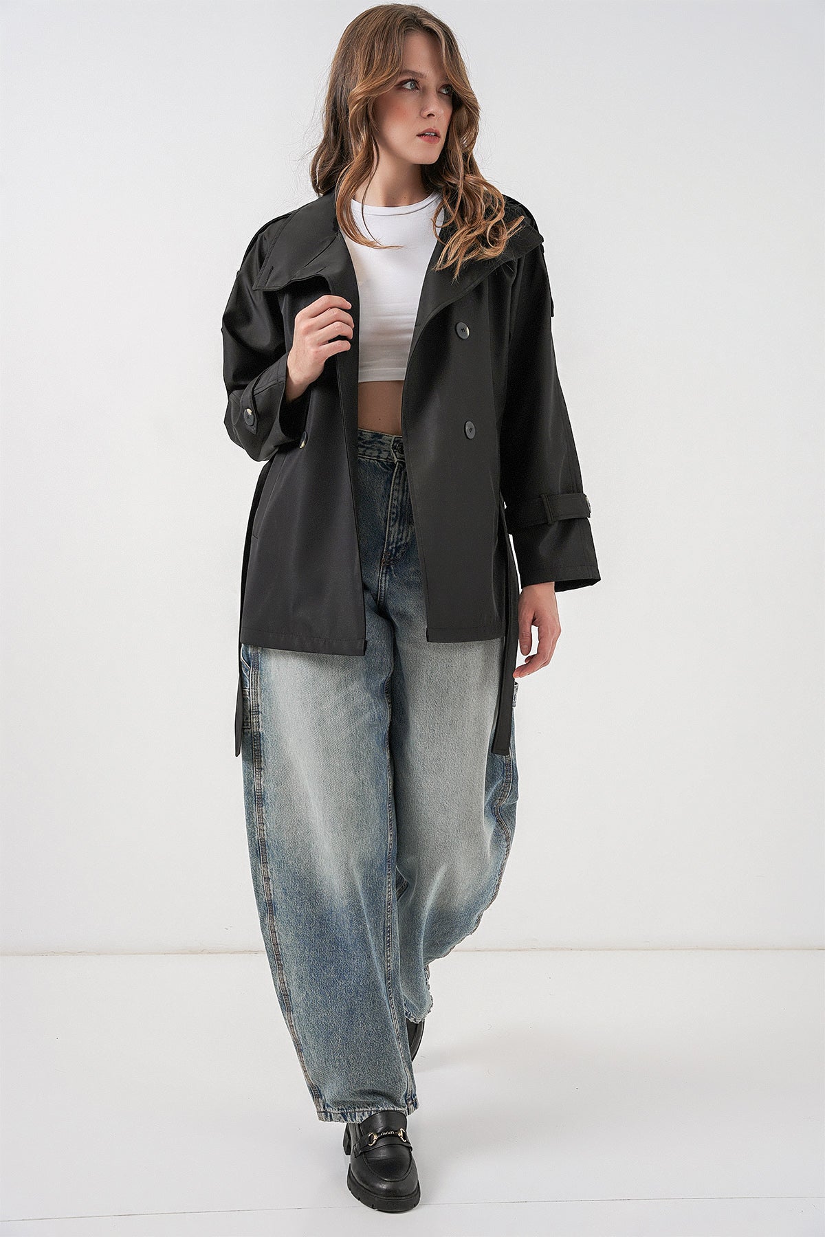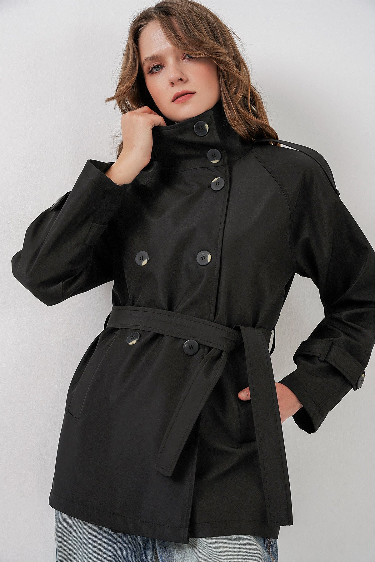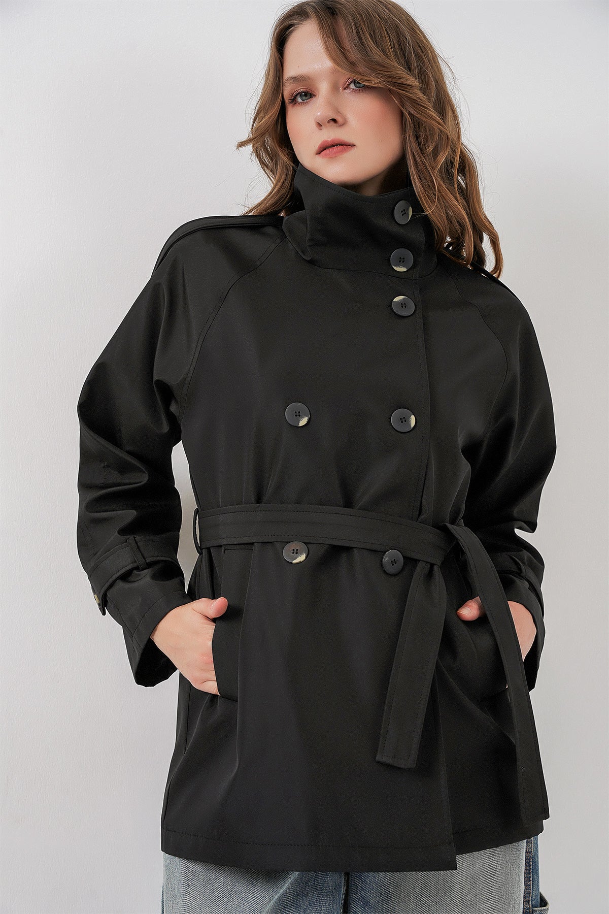 BGD Women Kadın Kruvaze Yaka Kısa Trençkot 5980 - Siyah - Norwich