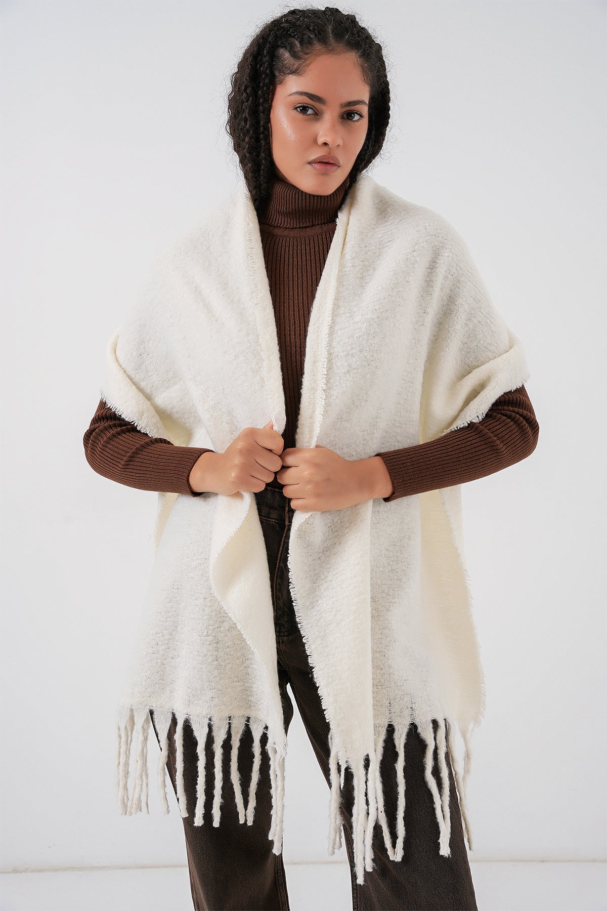 BGD Women Kadın Yumuşak Dokulu Kalın Şal Atkı 15951 - Ekru - Bila Tserkva