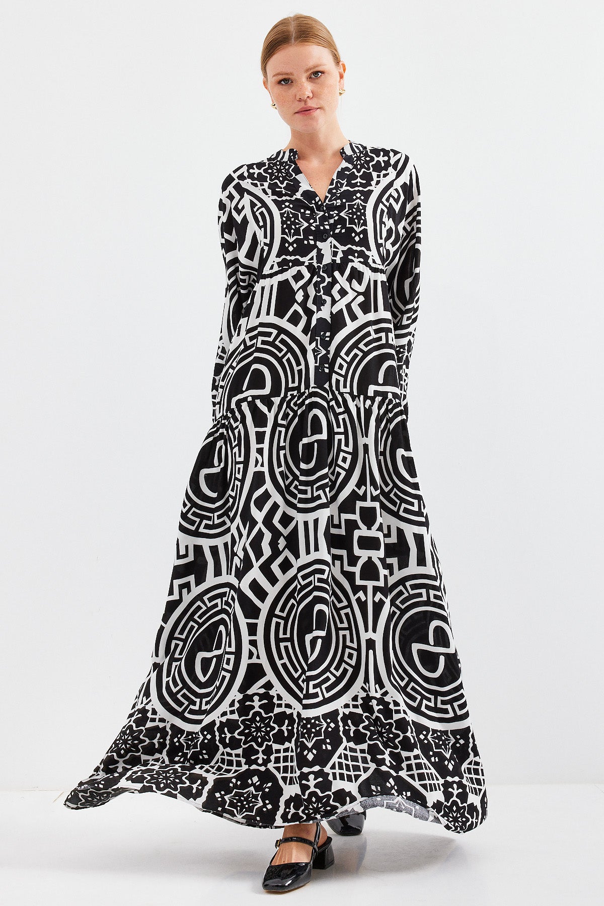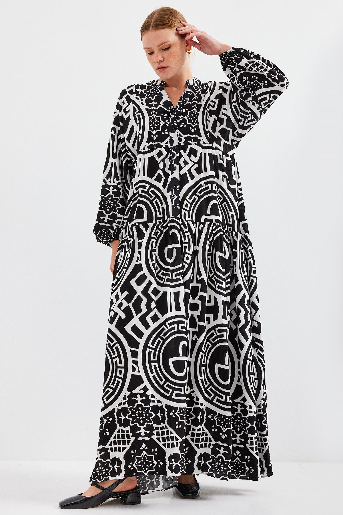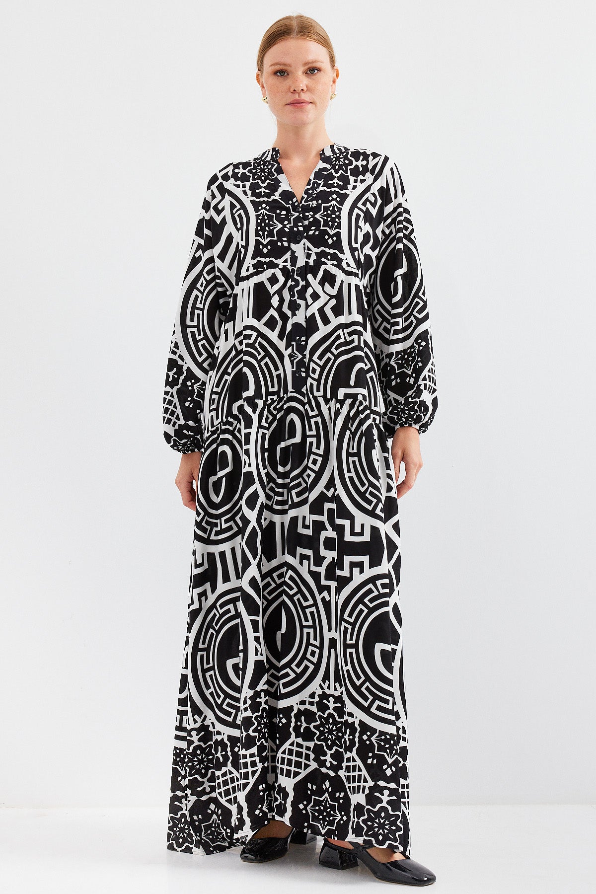 BGD Women Otantik Desenli Tesettür Elbise - Siyah5 - Soledad de Graciano Sánchez