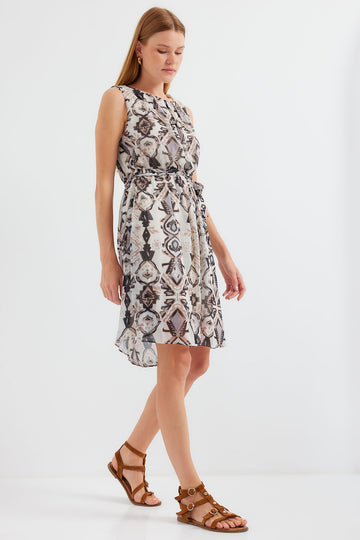 BGD Women Patterned Sleeveless Chiffon Dress - Black - Avondale