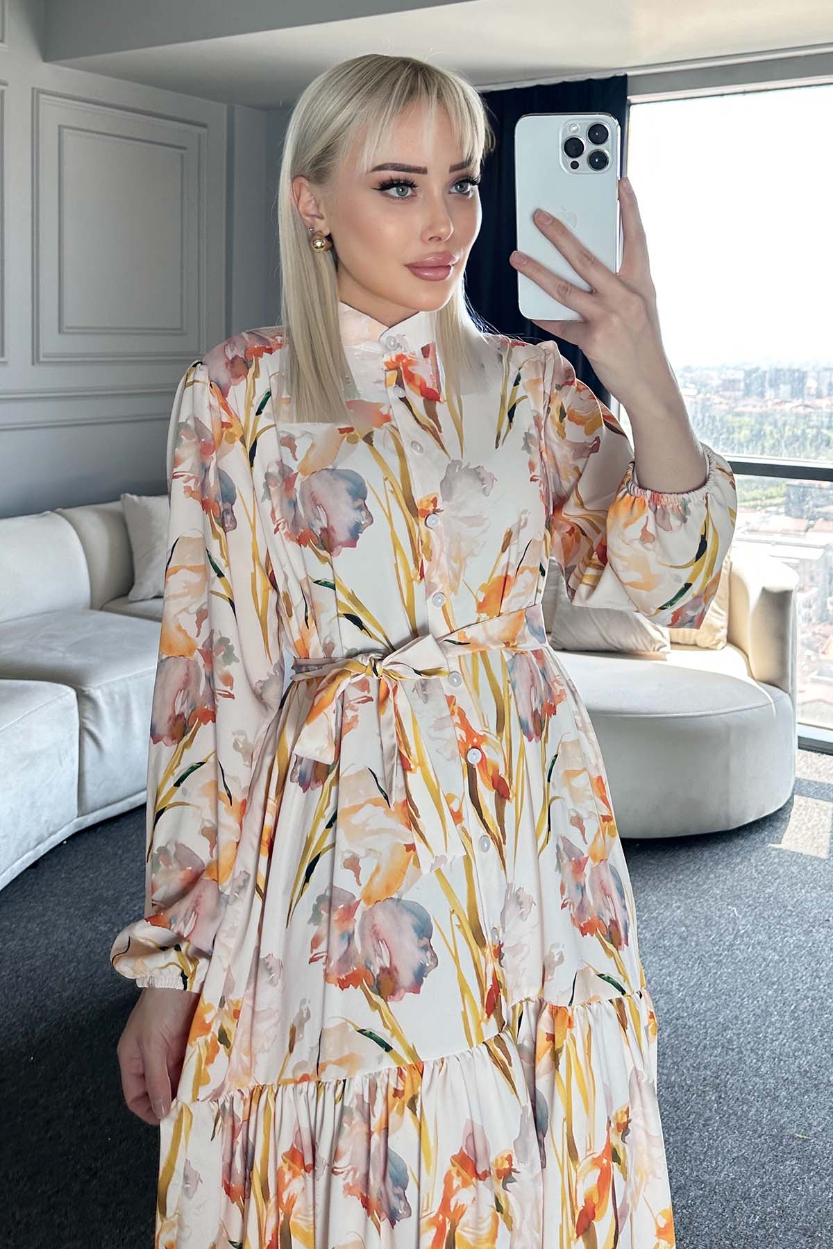 BGD Women Woman Patterned Long Hijab Dress 2586 - Yellow - Bedford