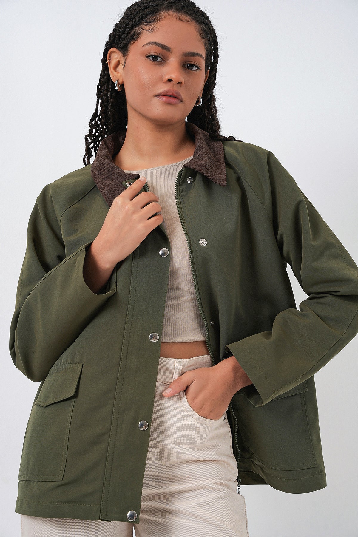 BGD Women Woman Pocket Detailed Oversized Jacket 5973 - Khaki - Florin