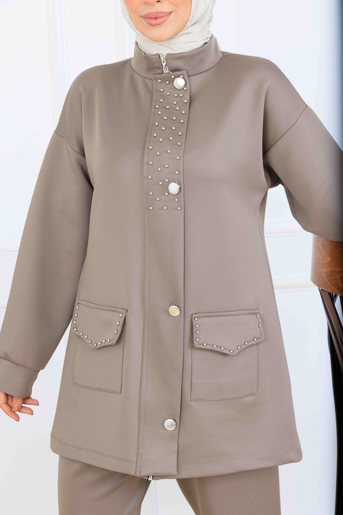 BNG Women Bead Detailed Scuba Twin Set N5334 Mink - Marino