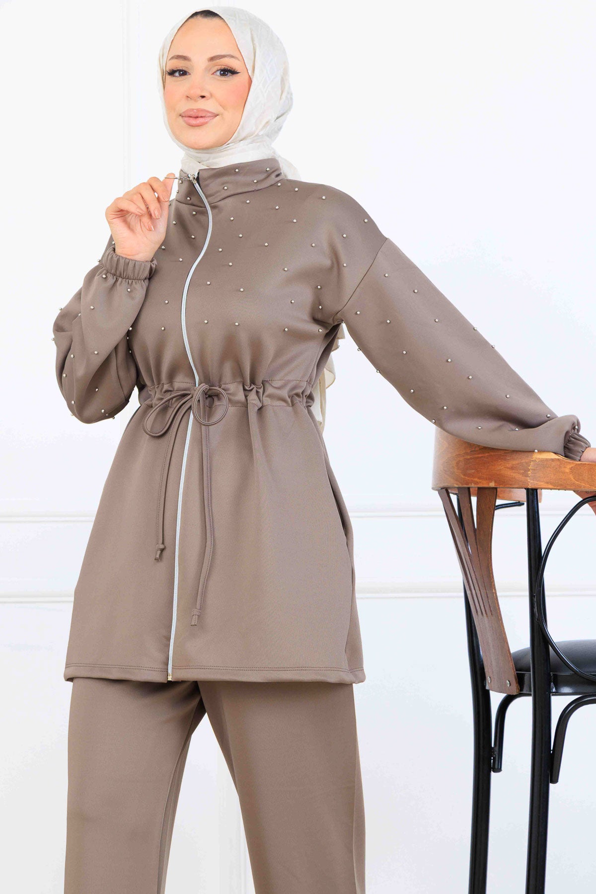 BNG Women Bead Detailed Scuba Two Piece Set N5361 Mink - Leesburg