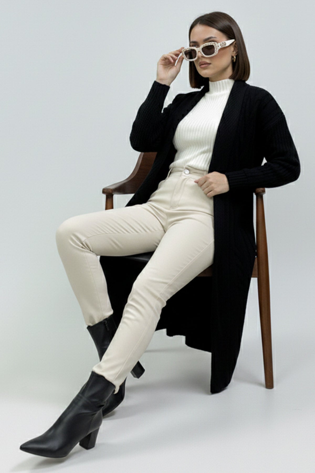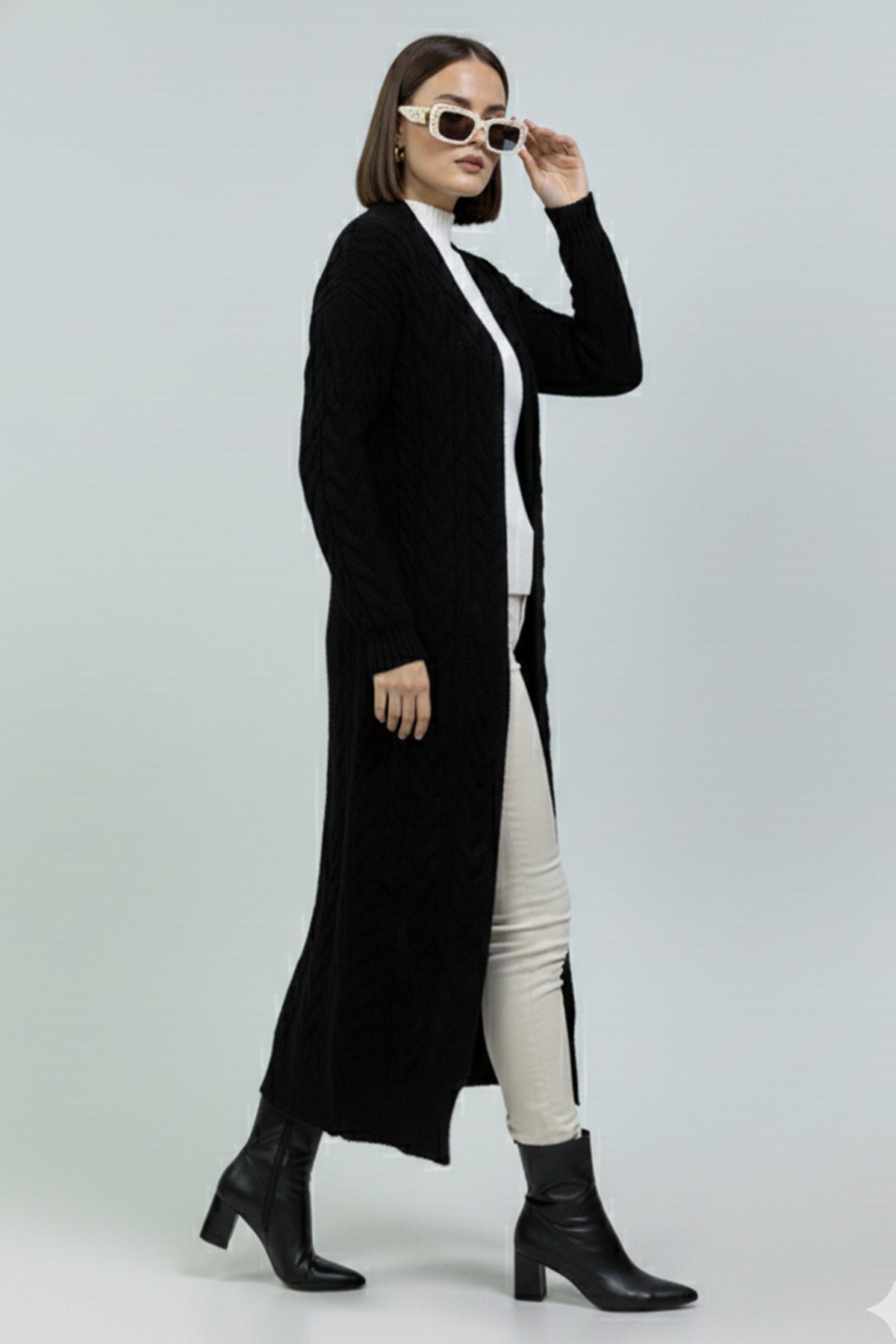 BNG Women Örgü Desenli Triko Hırka R10006 Siyah - Oss