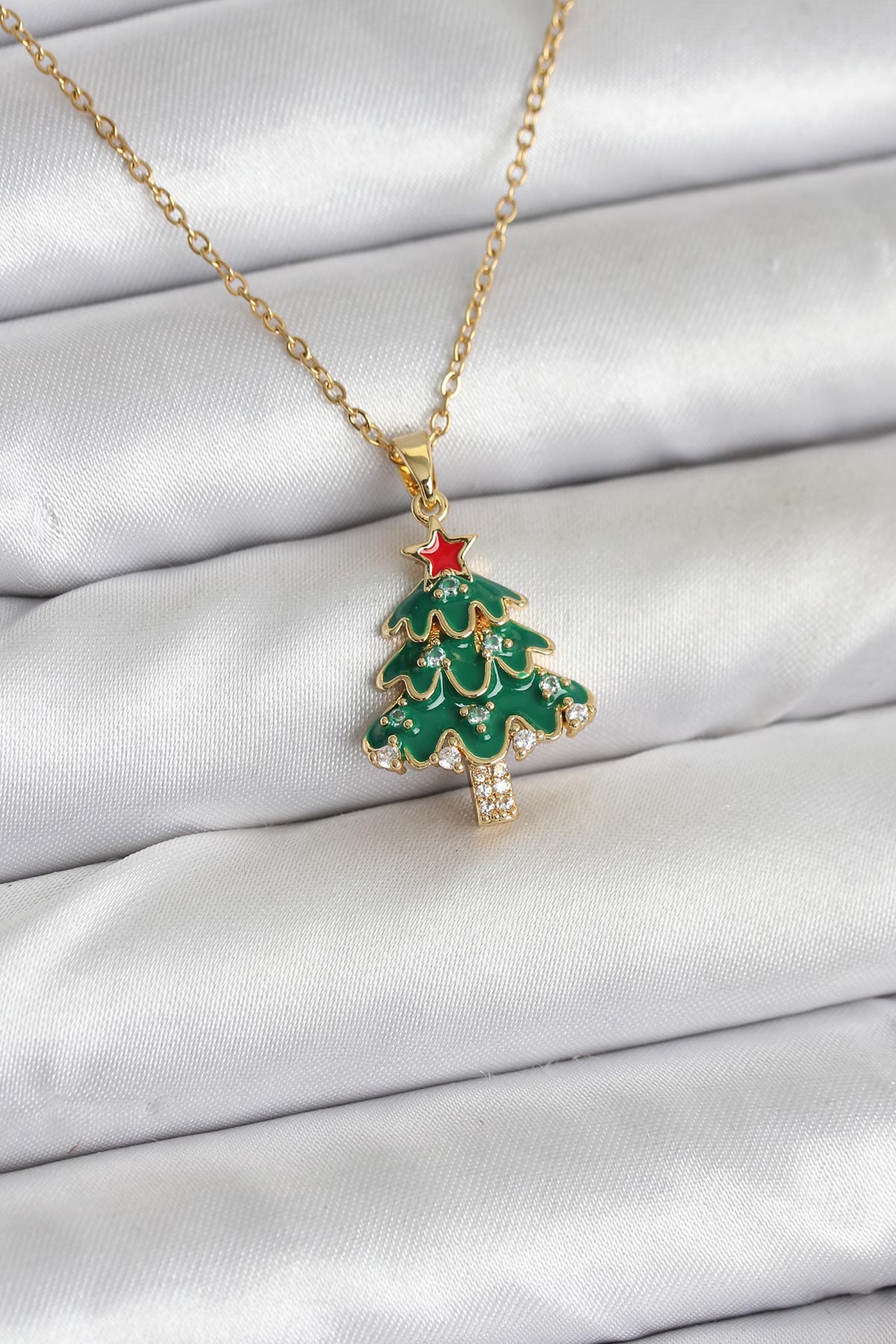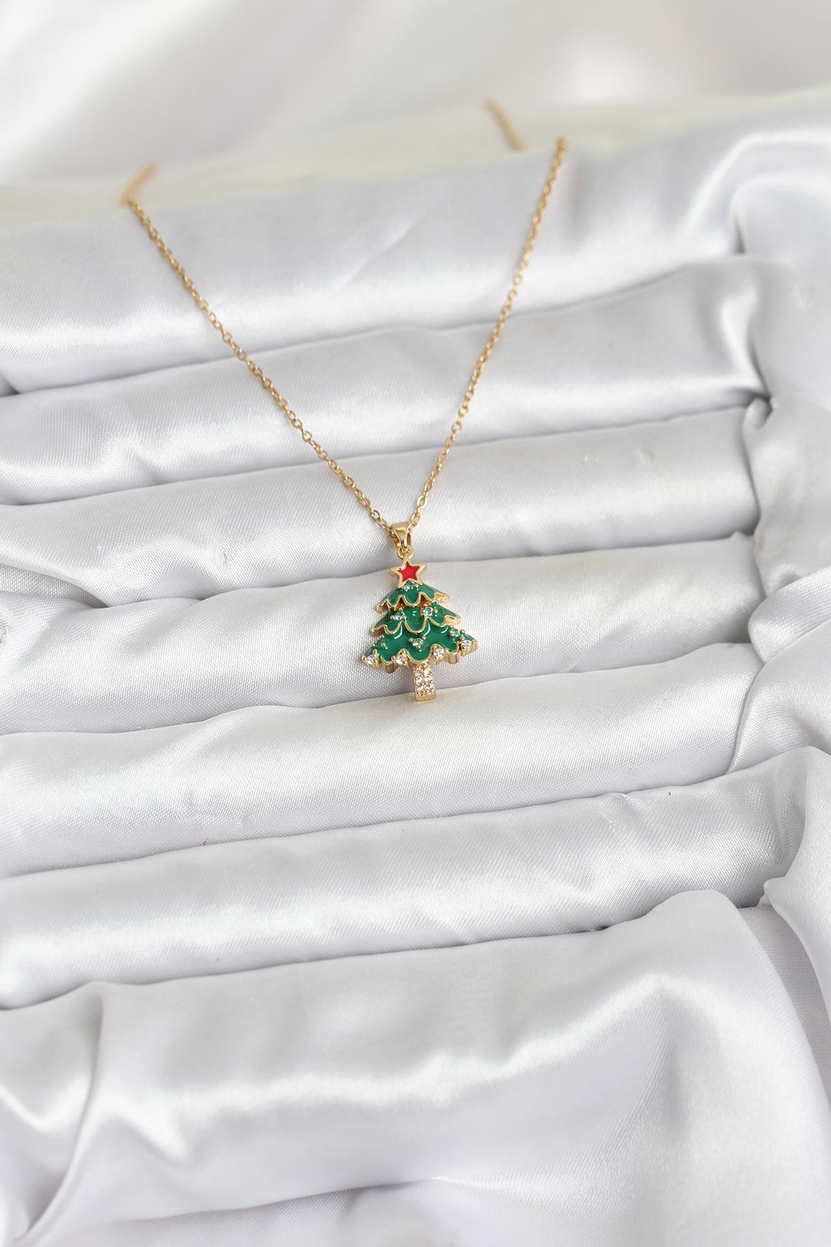EBJ 316L Çelik Zincir Gold Renk Çam Ağacı Model Yılbaşı Temalı Kadın Kolye - South Shields