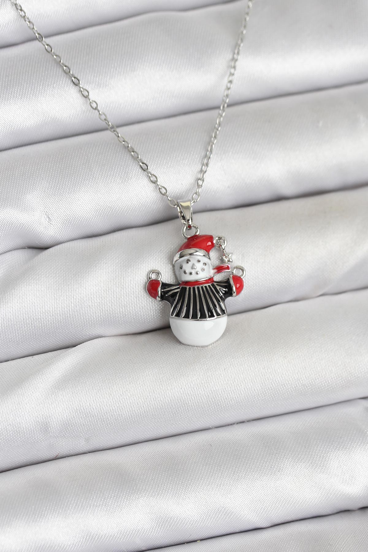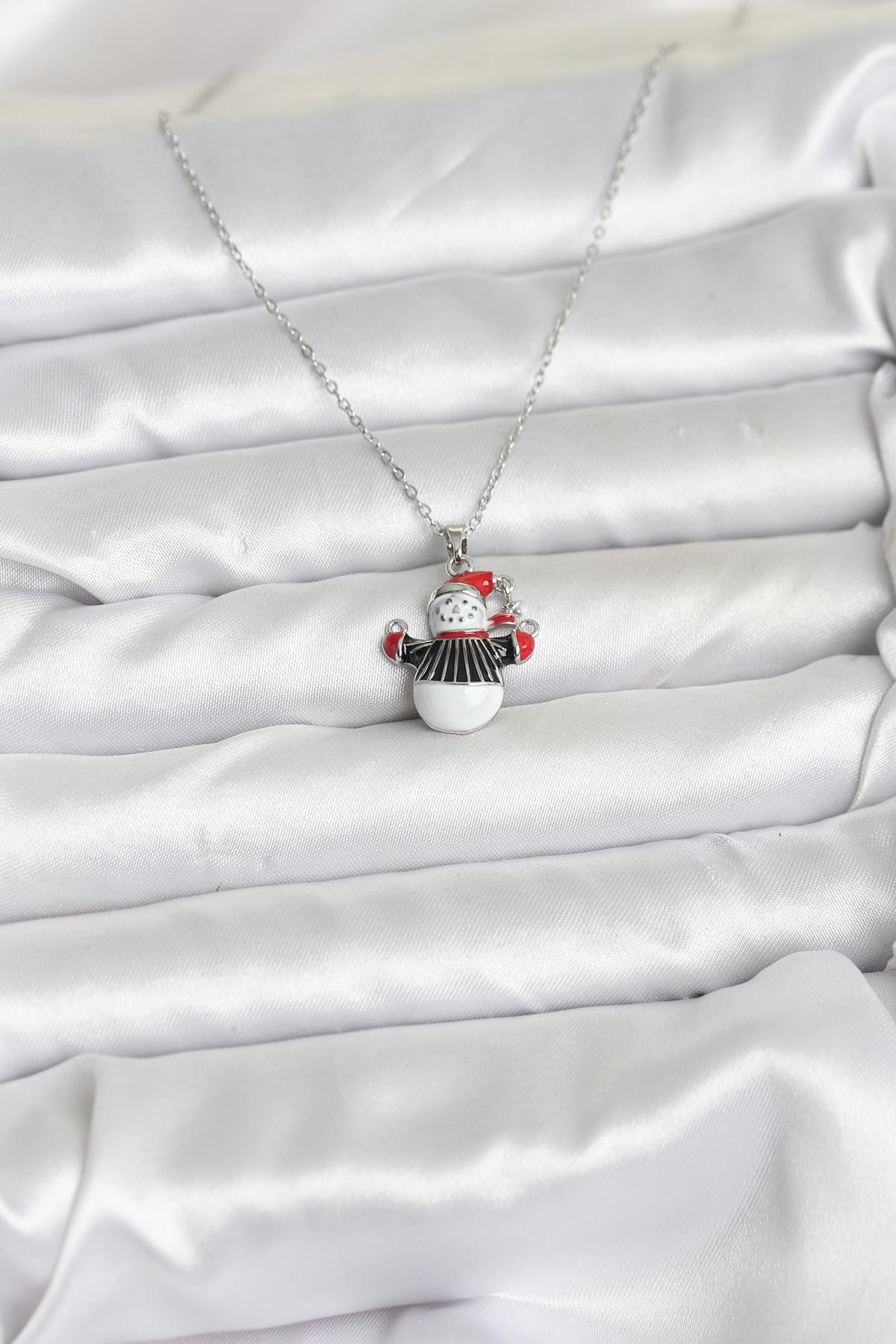 EBJ 316L Çelik Zincir Gümüş Renk Kardan Adam Figürlü Yılbaşı Temalı Kadın Kolye - Licata