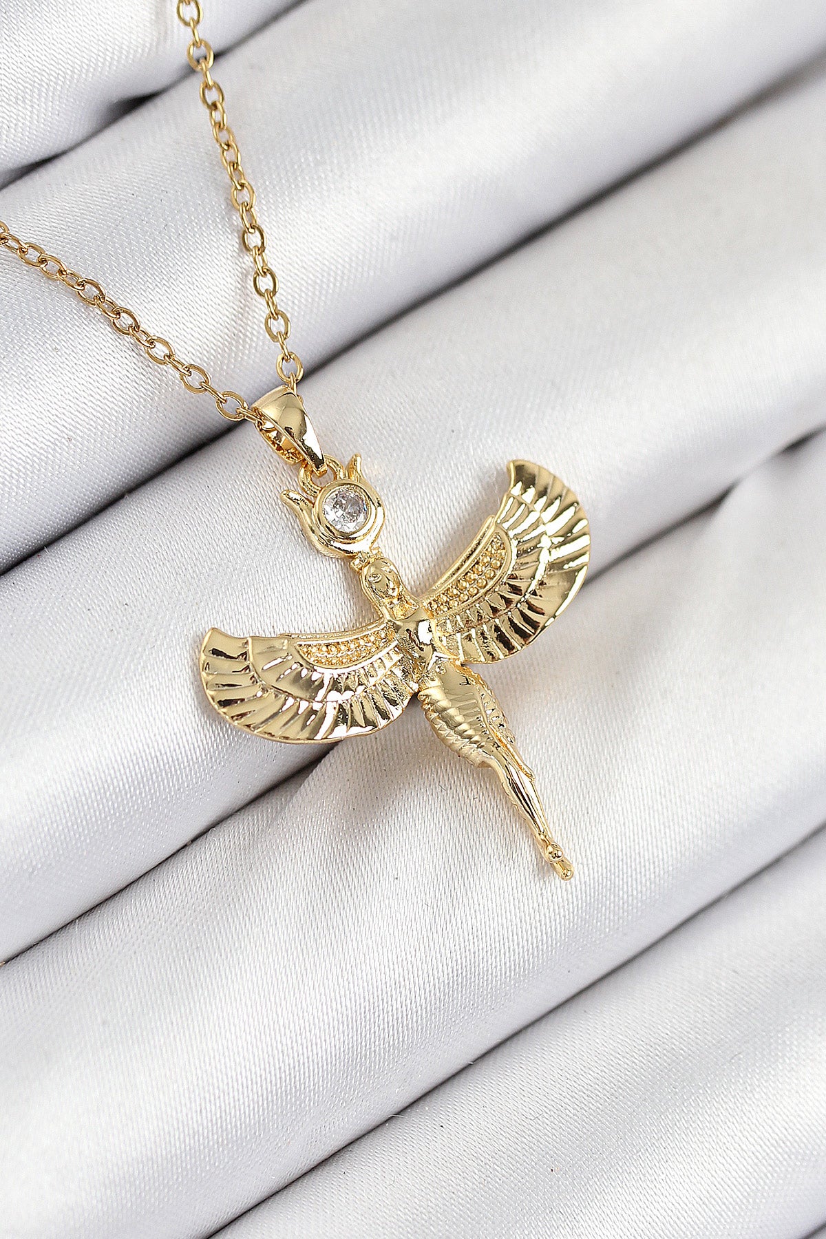 EBJ 316L Stainless Steel Angel Model Necklace with Zircon Stone in Gold Color for Women - Annecy
