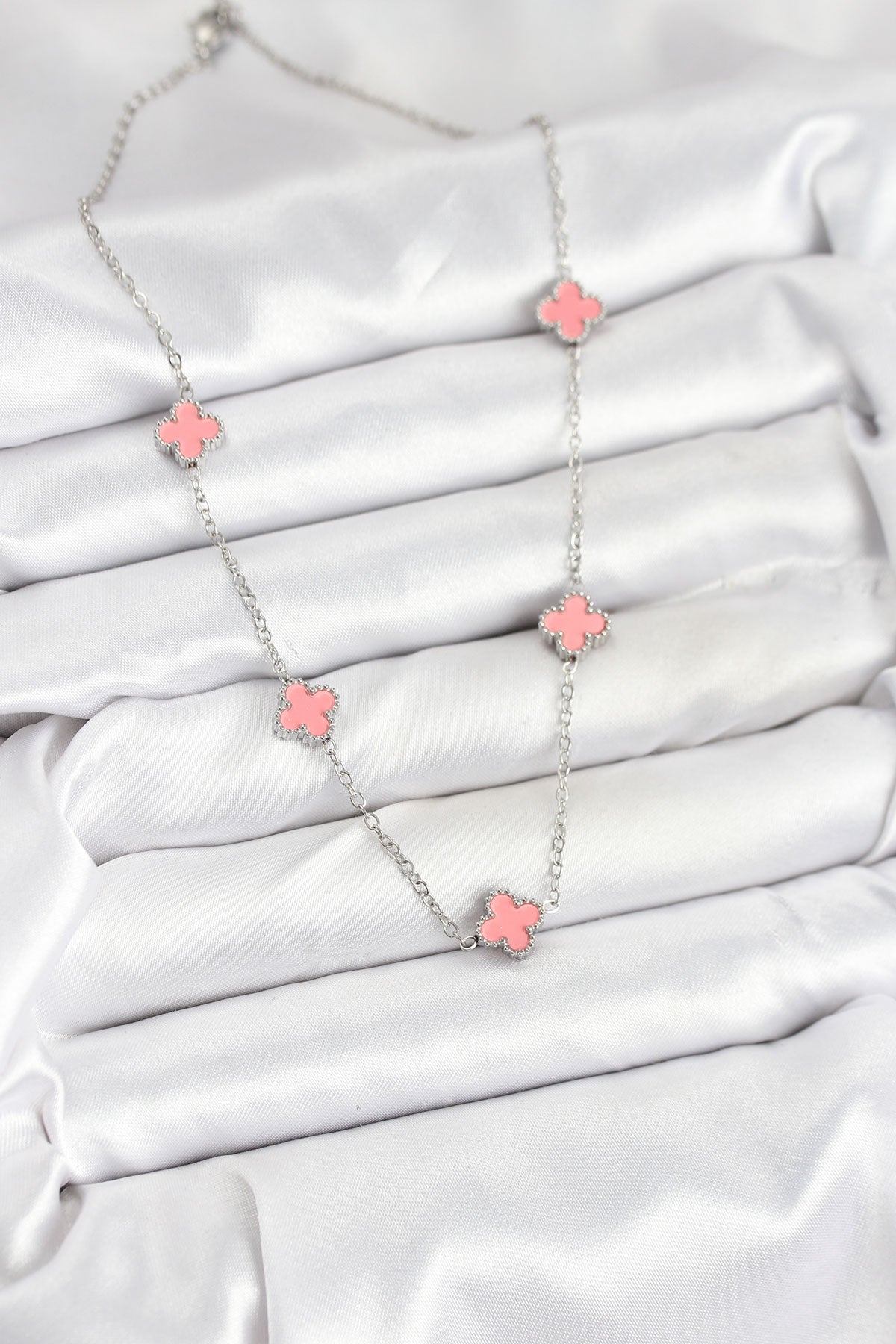 EBJ 316L Stainless Steel Chain Silver Color Pink Baby Boy Clover Women Necklace - Jonesboro