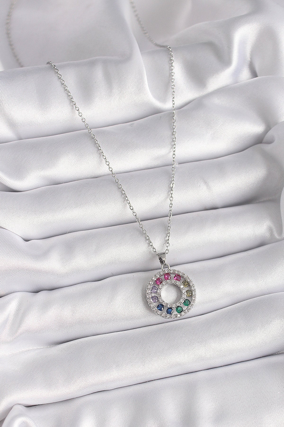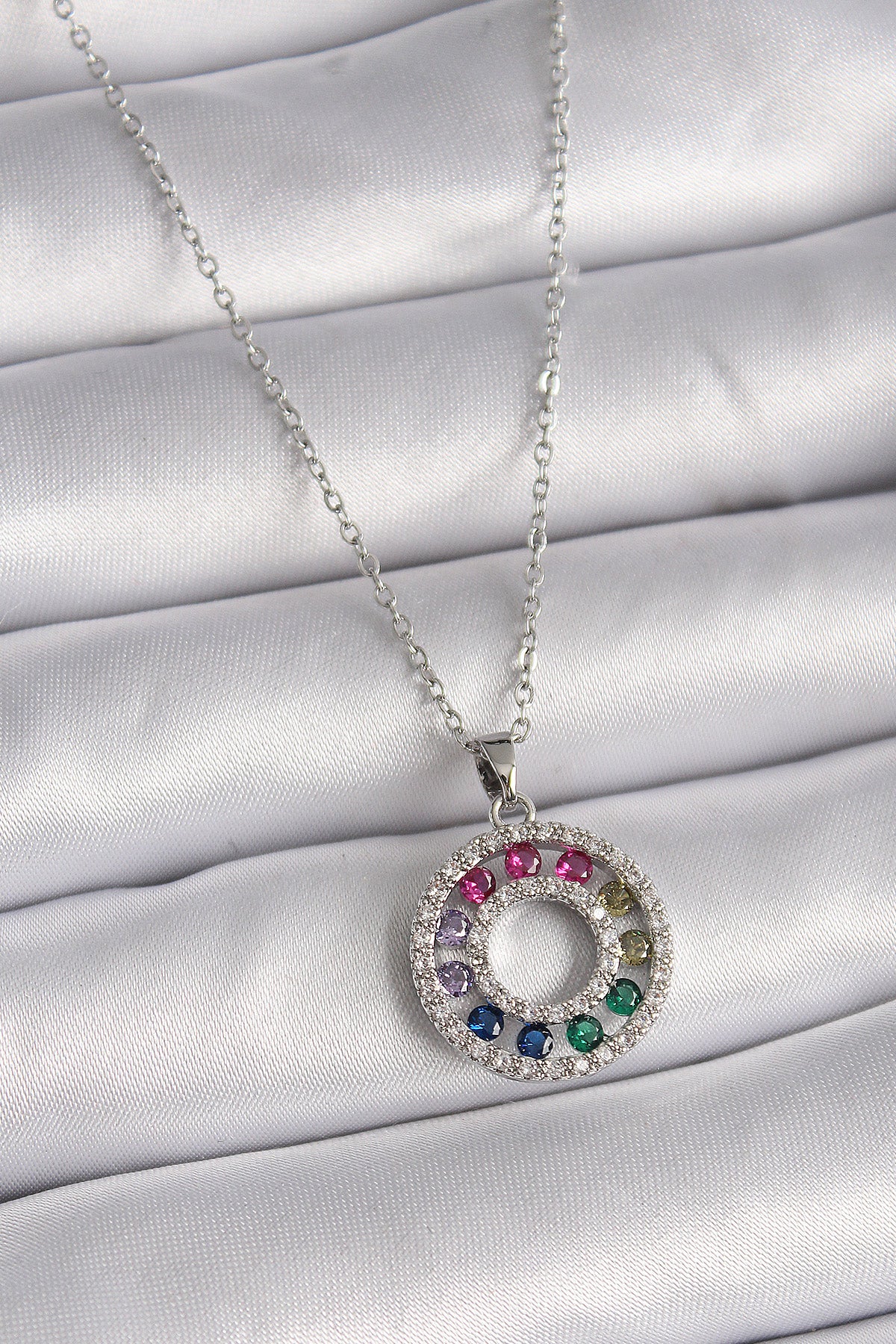 EBJ 316L Stainless Steel Silver Color Chain Colorful Zircon Stone Pendant Model Women's Necklace - Pearland