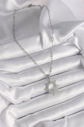 EBJ 316L Stainless Steel Silver Color Chain Sun Design Women's Necklace with Zircon Stone - Riccione Marina
